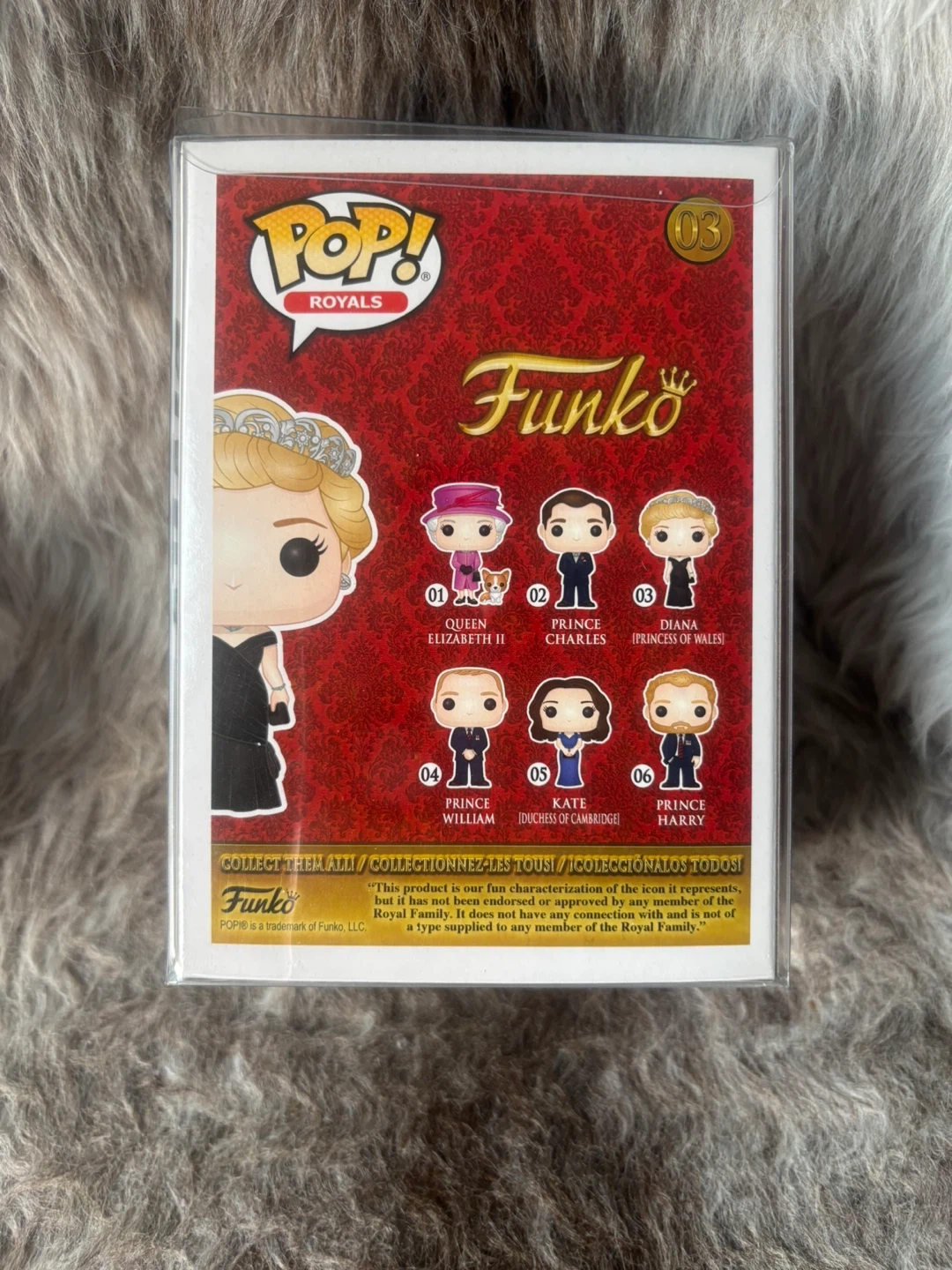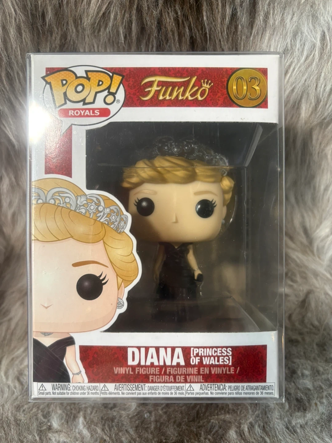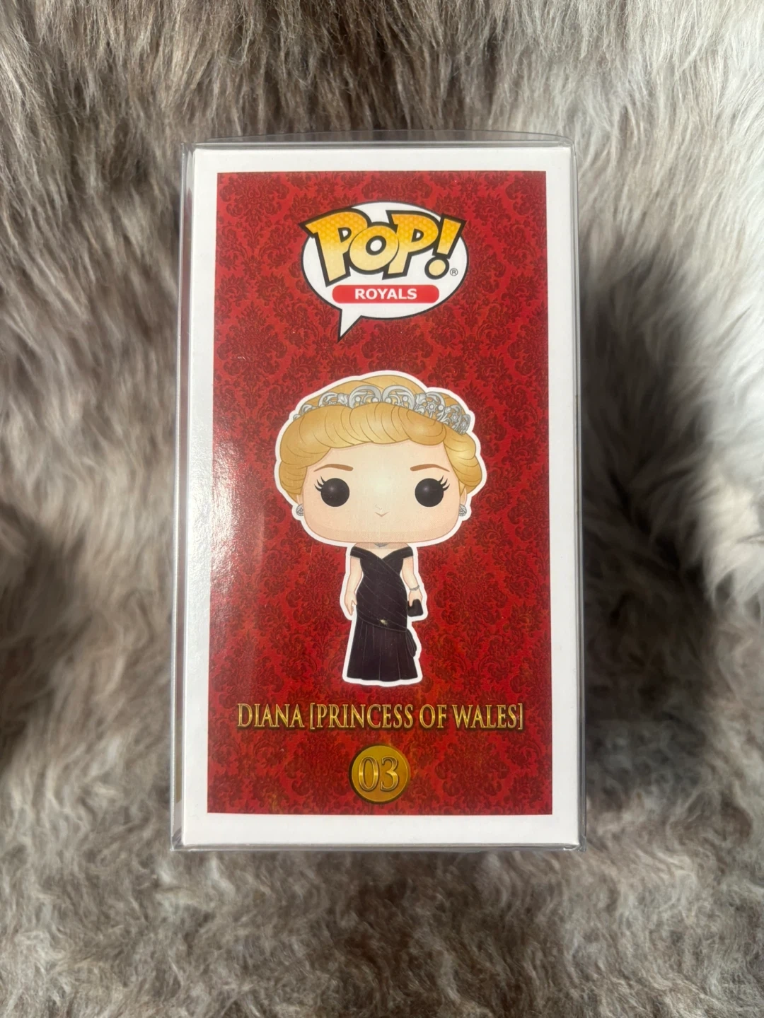 Funko Pop! Royals vinyl figure of Diana, Princess of Wales number 03 with the black dress.. Vinyl figure in original packaging with protective sleeve.