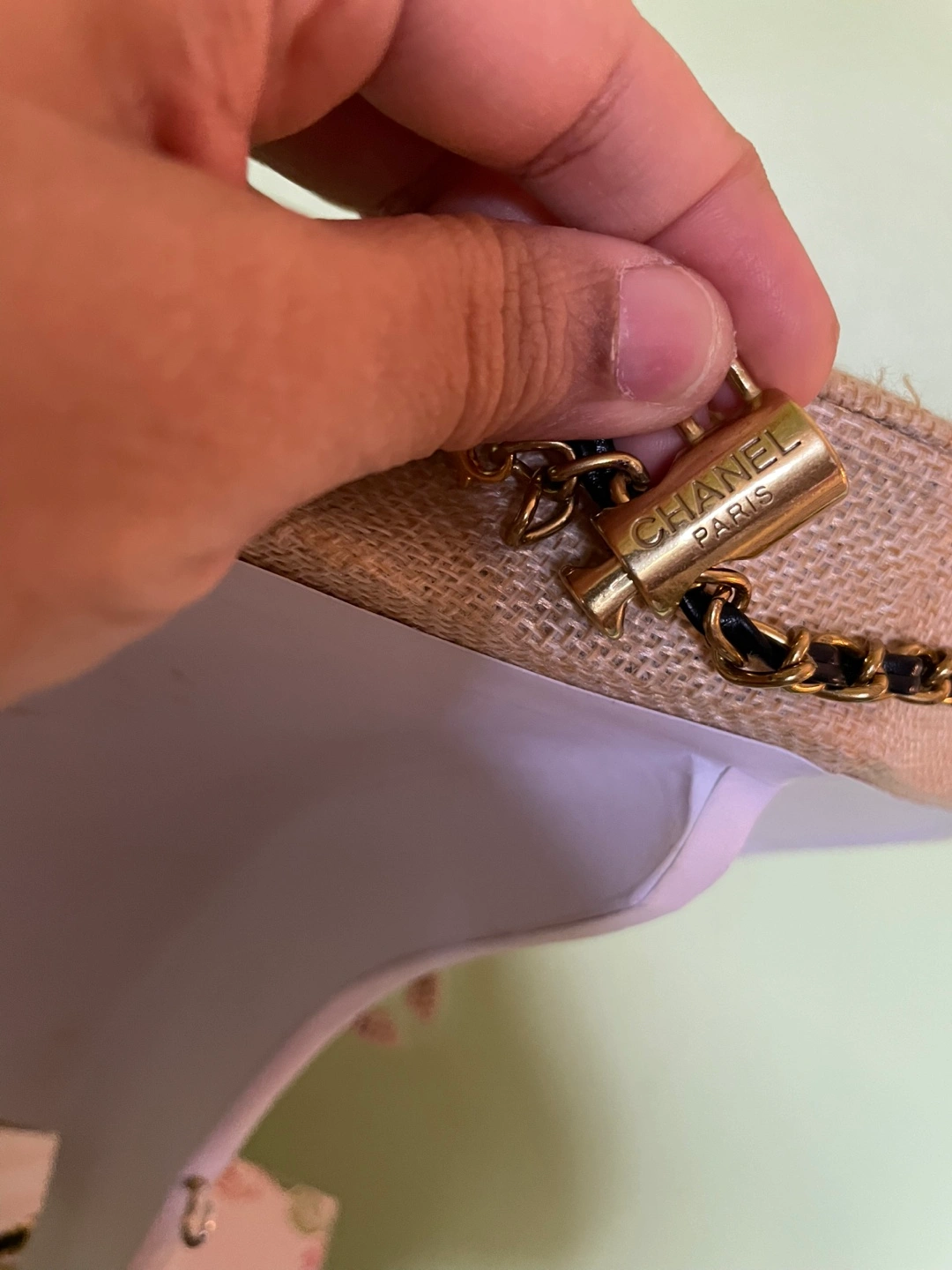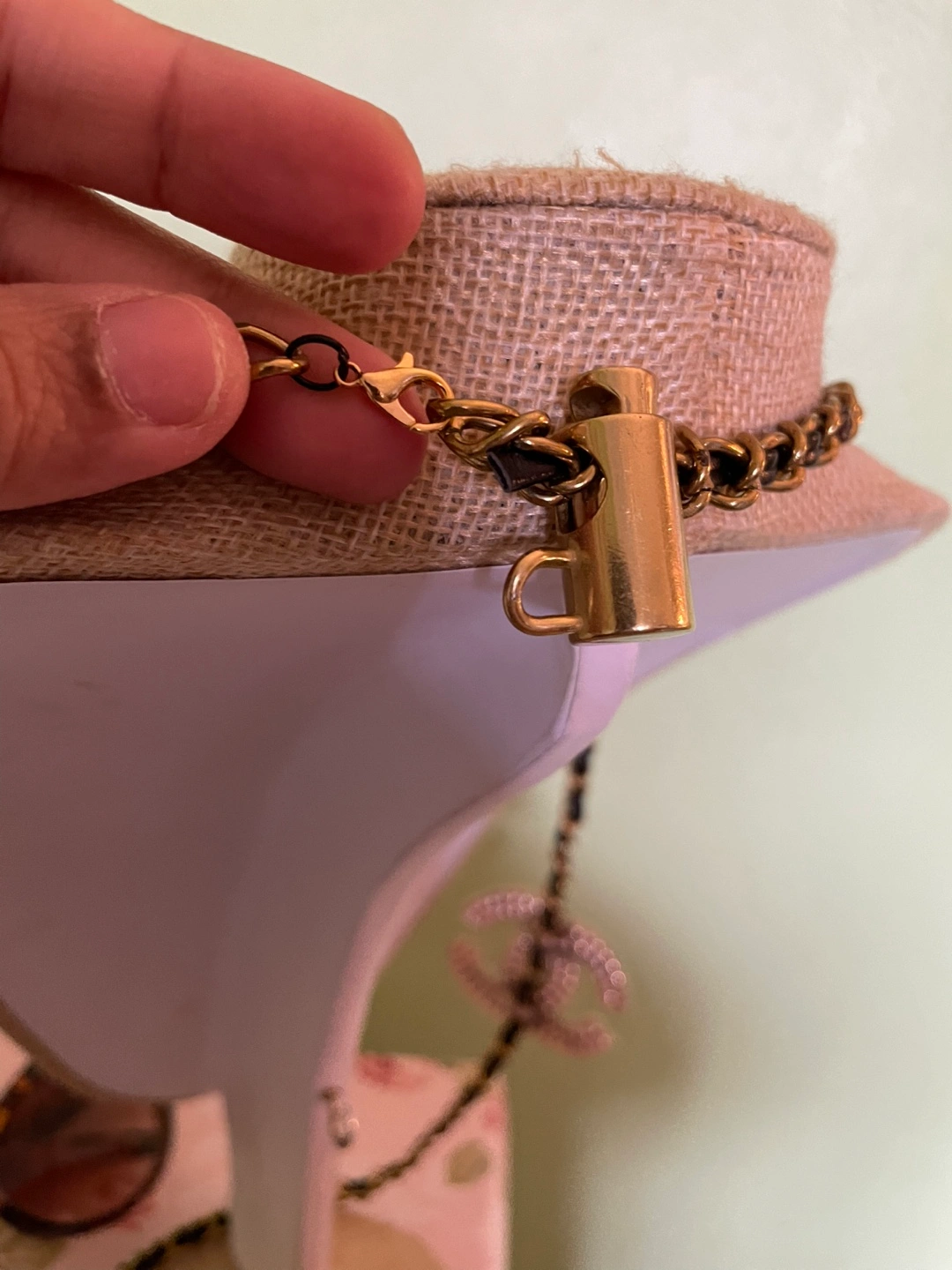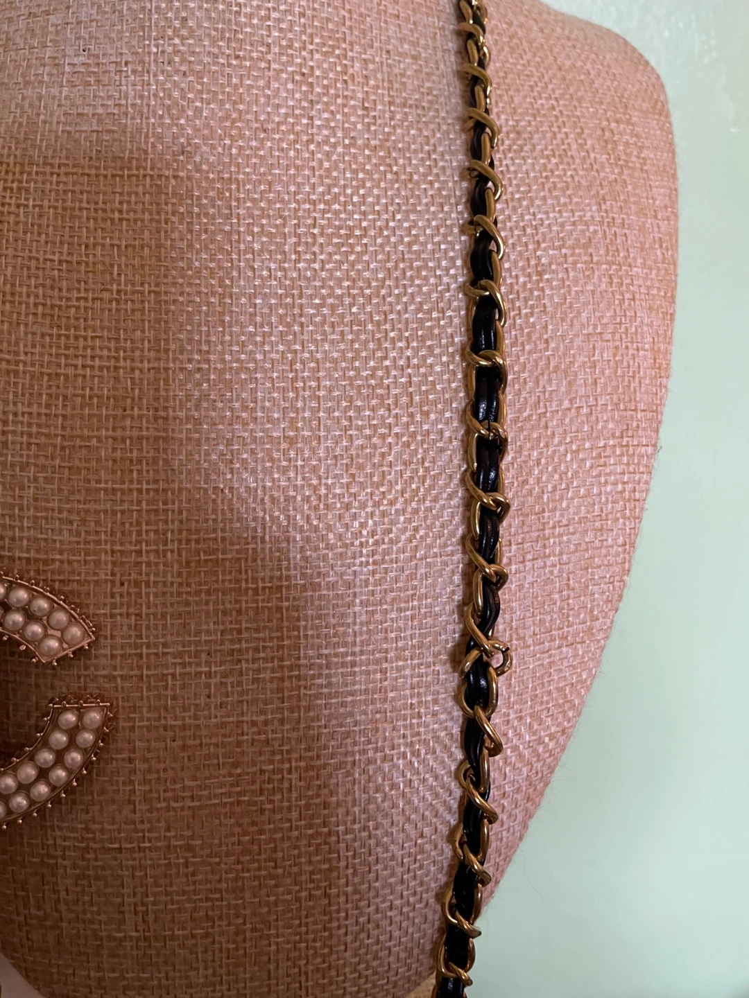 Authentic Chanel bag strap. Black leather and gold chain. Perfect accessory for adding a touch of glamour.