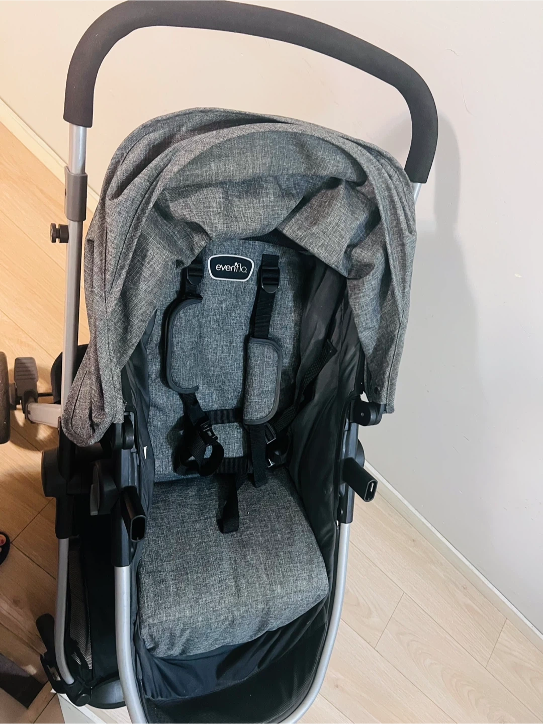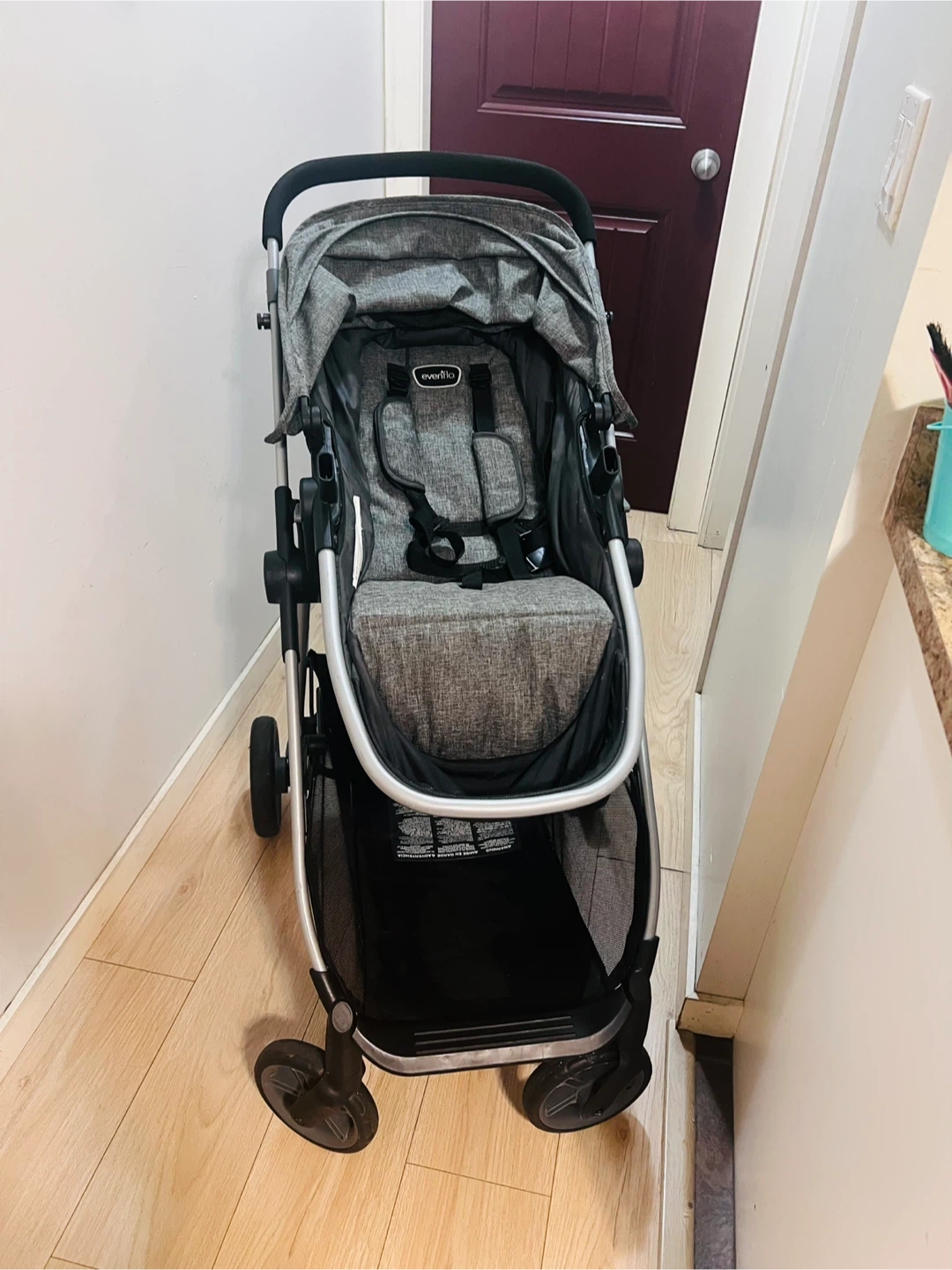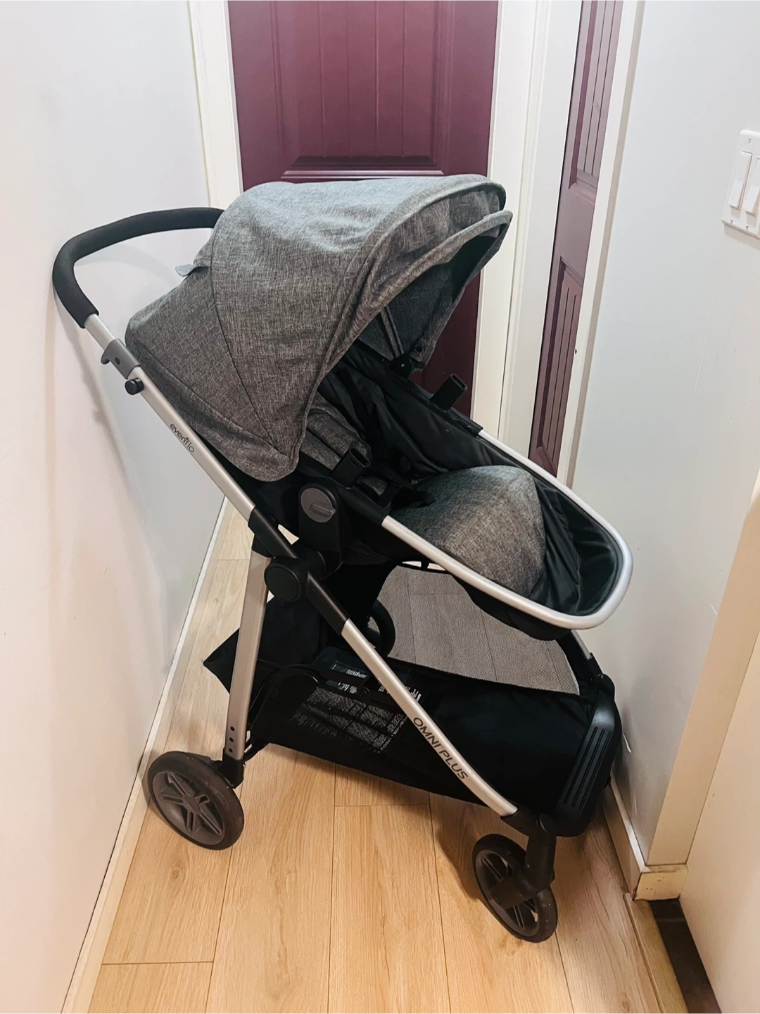 This is an Evenflo Omni Plus stroller. It's a grey, versatile stroller. It features a large storage basket underneath.Barely used stroller, there are no wear & tear, no stratch, never had any spill on it, and in a really good shape. Please reach me out if anyone is interested