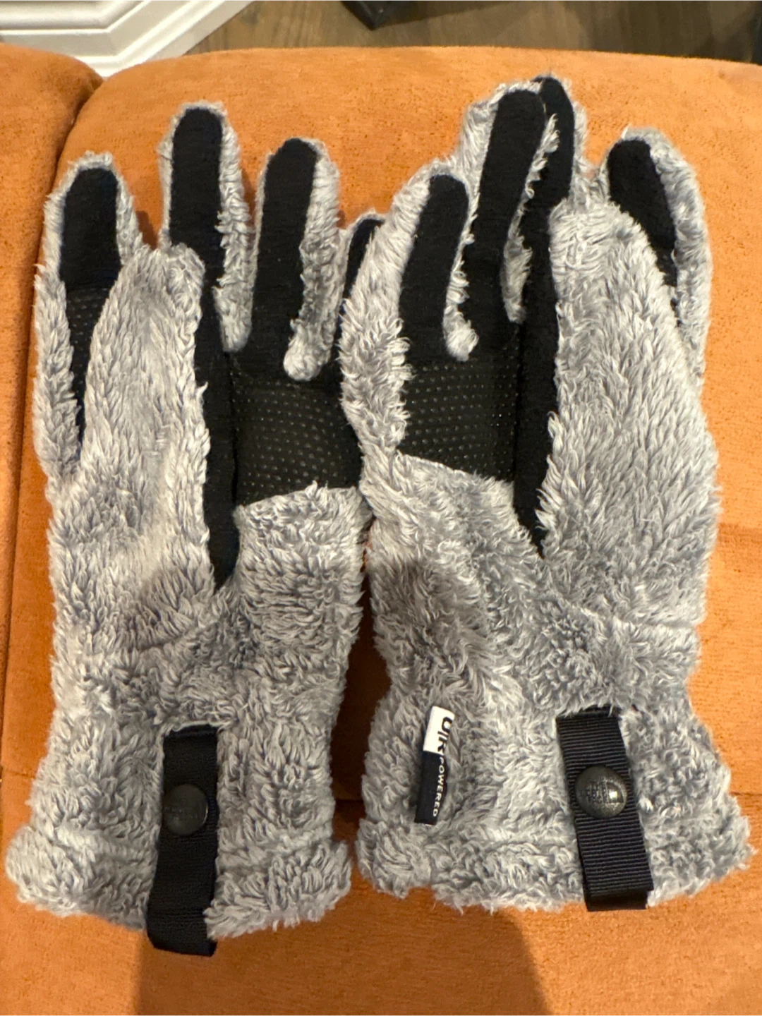 Selling a pair of cozy The North Face fleece gloves in a lovely grey colour!