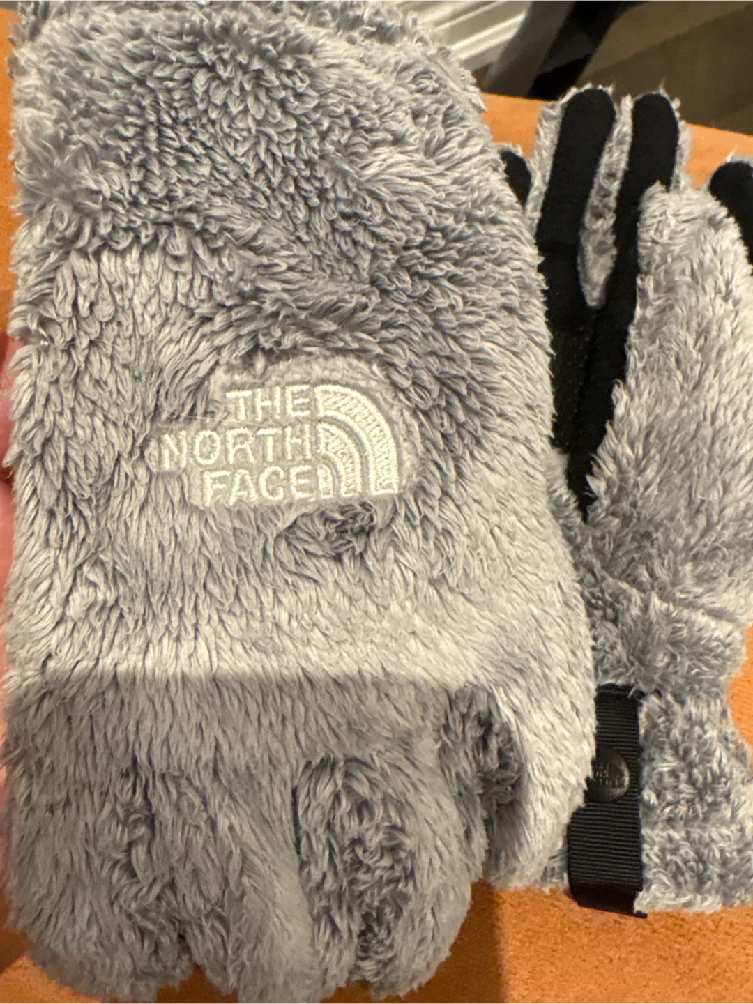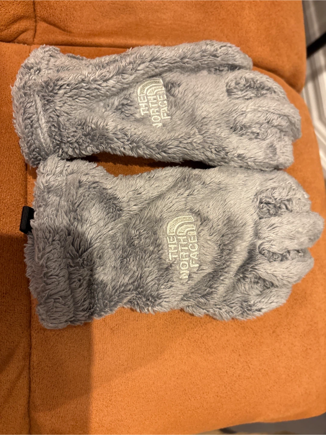 Selling a pair of cozy The North Face fleece gloves in a lovely grey colour!