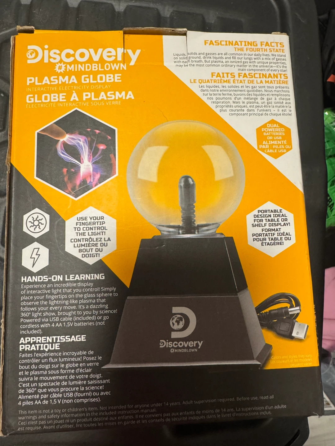 1 / 61 / 6Buy & SellDiscovery Plasma OrbDiscovery Plasma Orb$15Brand New Still in the box It’s a small plasma orb Cool toy for any kid! $15ConditionNewWHERE TO MEETVictoria Drive & East 41st AvenueView MapSELLERverifiedNickyKensington Cedar Cottage33327 reviews0 chats·1 favorites·15 viewsSEND CHAT TO SELLERHi Nicky! I’m interested in your listing.Hi Nicky! I’m interested in your listing.Get the Karrot app to chatSign In to chat