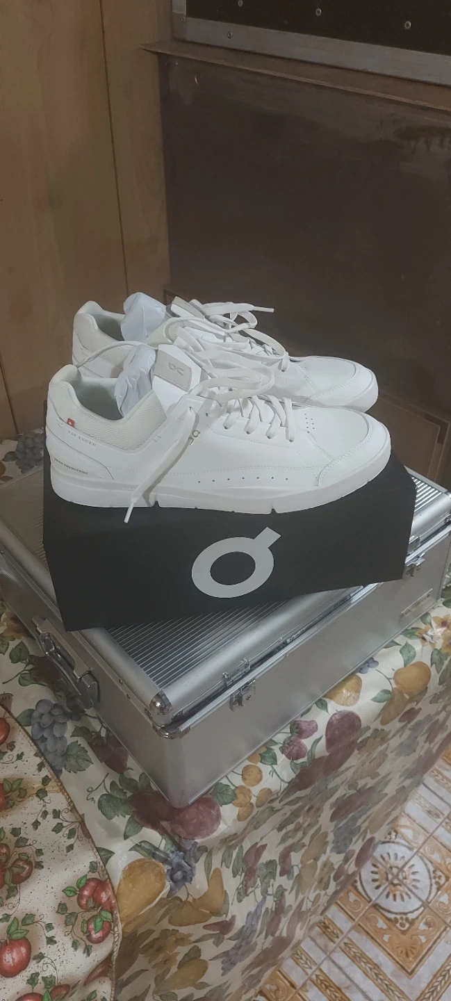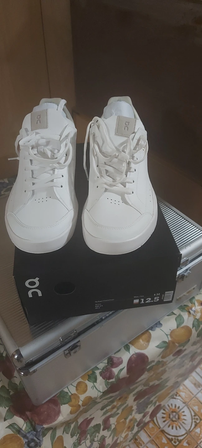 Brand new ON RF Center Court sneakers in a crisp white colour. These are size 12.5 mens. They're built for comfort and style, perfect for everyday wear.