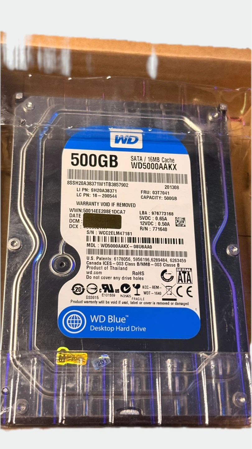 89Selling a brand new WD Blue 500GB desktop hard drive! - SATA / 16MB Cache - Model: WD5000AAKX - Desktop Hard Drive