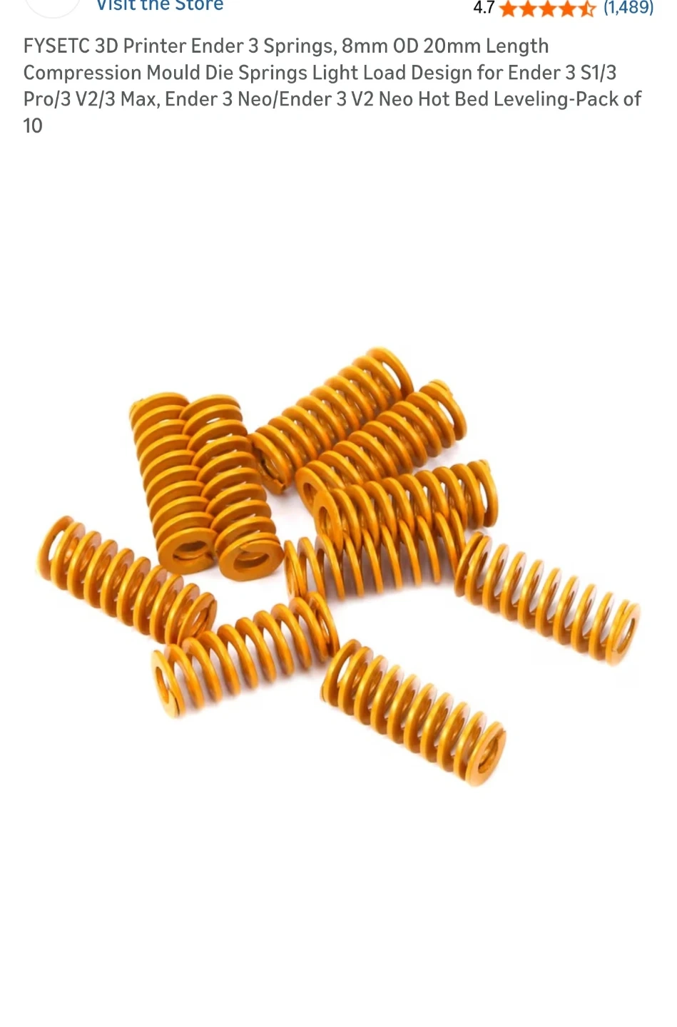 FYSETC3D Printer Ender3 Springs, 8mm OD 20mm Length Compression Mould Die Springs Light Load Design for Ender 3