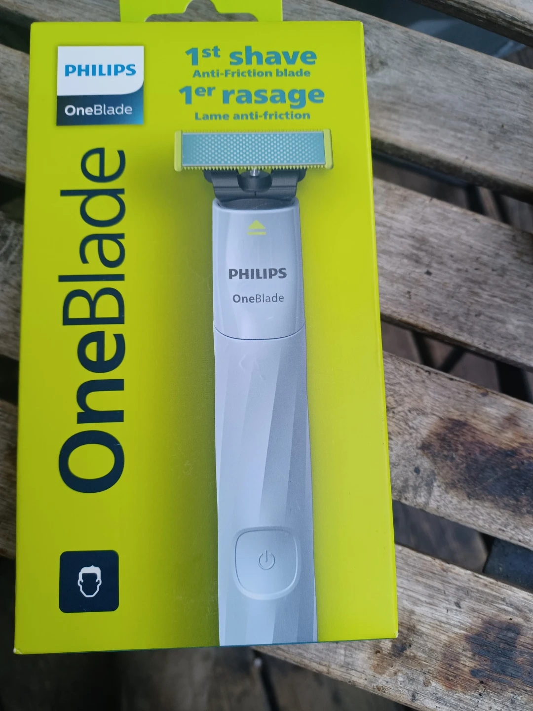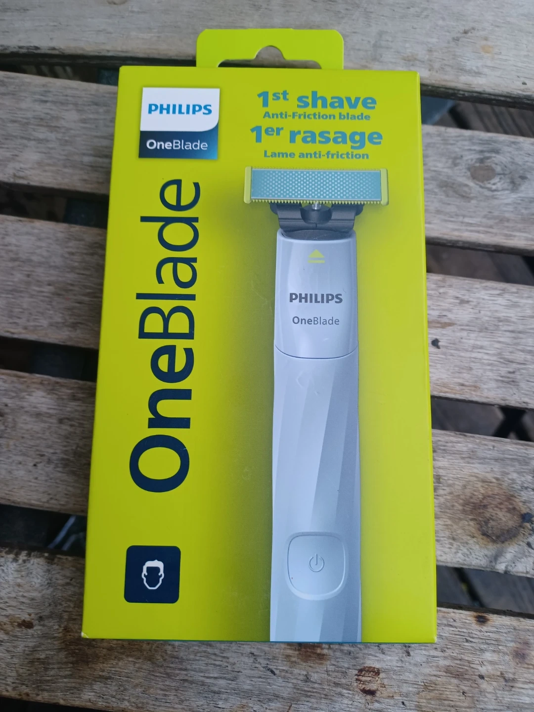 This is a Philips OneBlade electric shaver. It features an anti-friction blade for a smooth shave. It's designed for easy grooming.