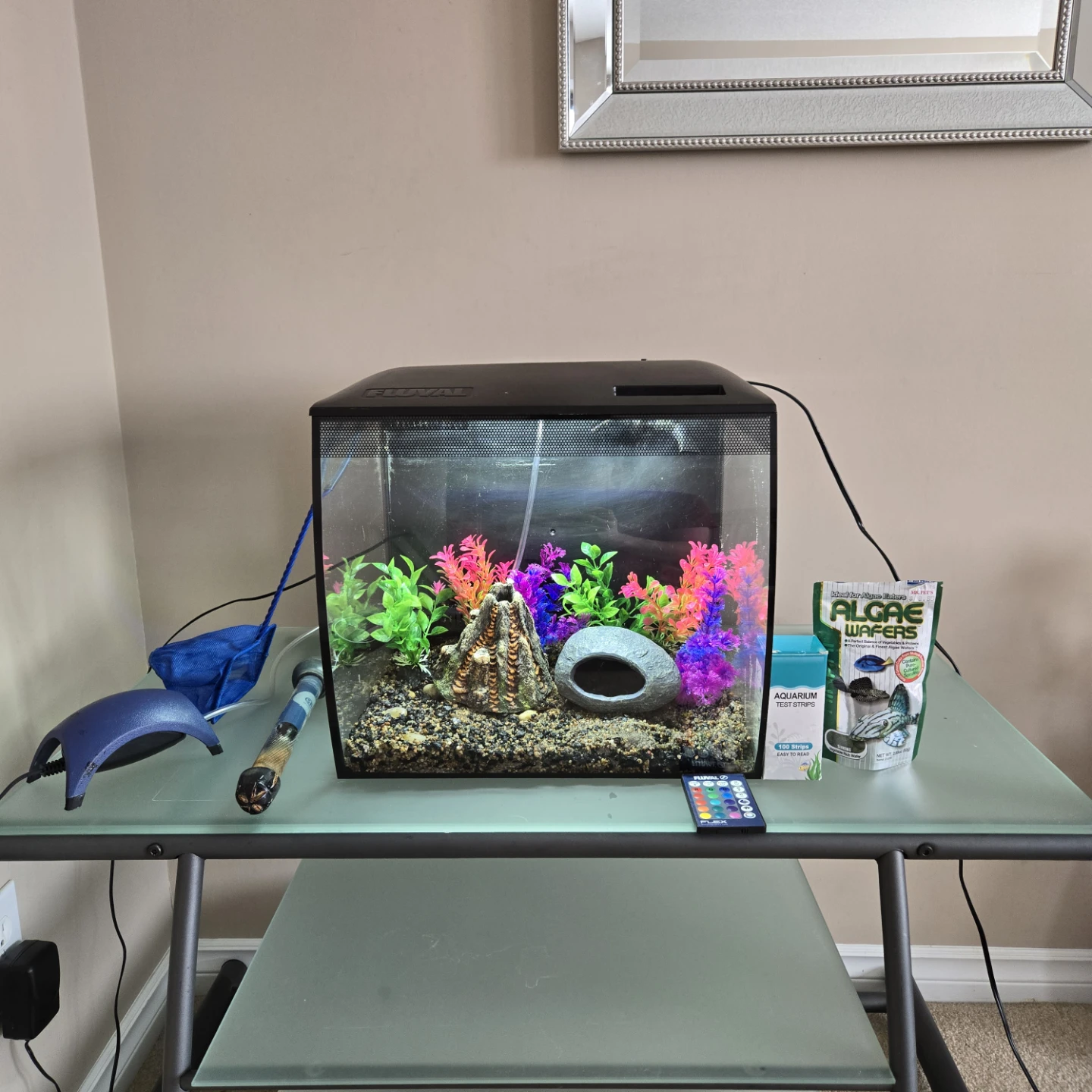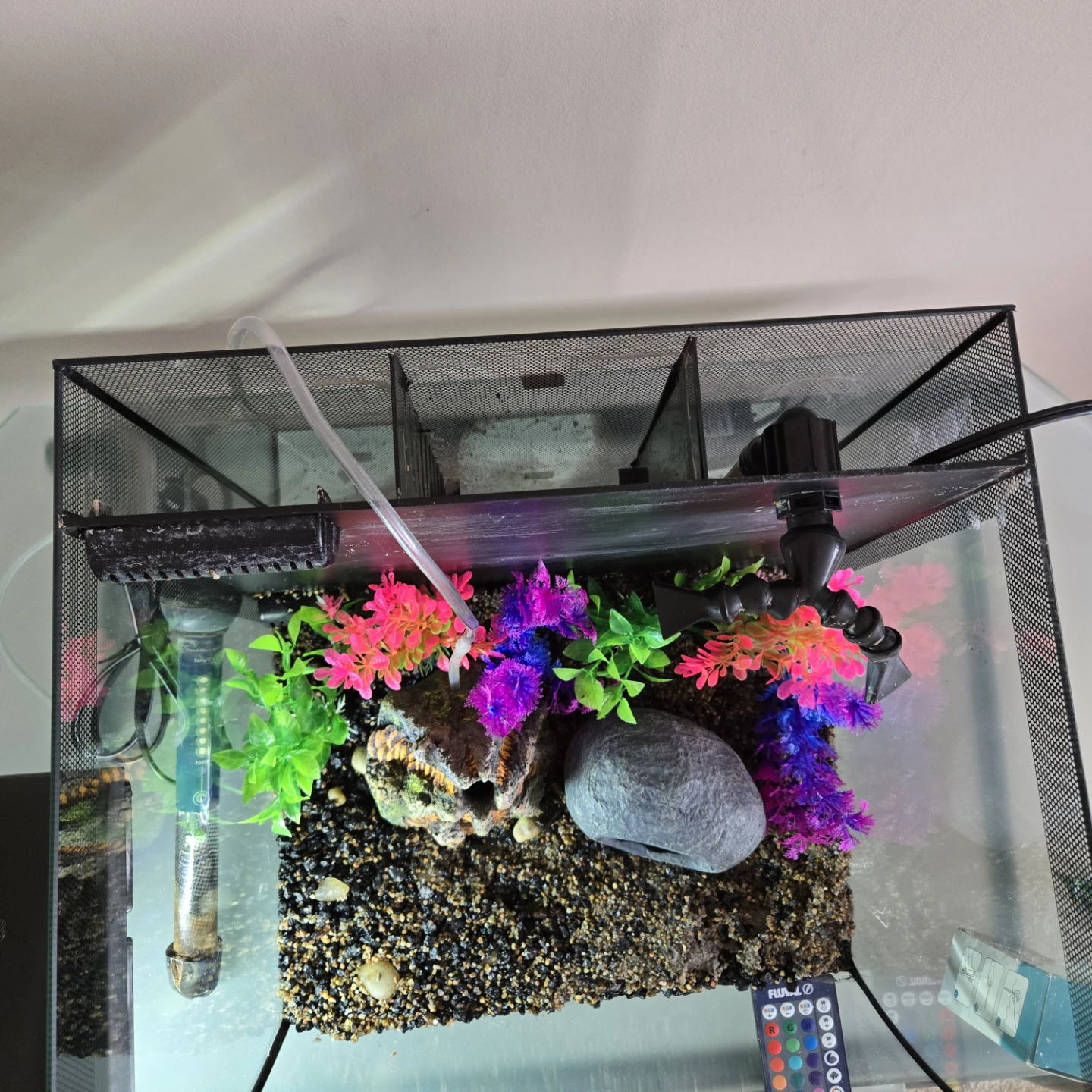 This fish tank is great for so many types of fish. It has a built in filter in the back and comes with filter media that I have in a container with water to keep the beneficial bacteria so you get a cycled filter.