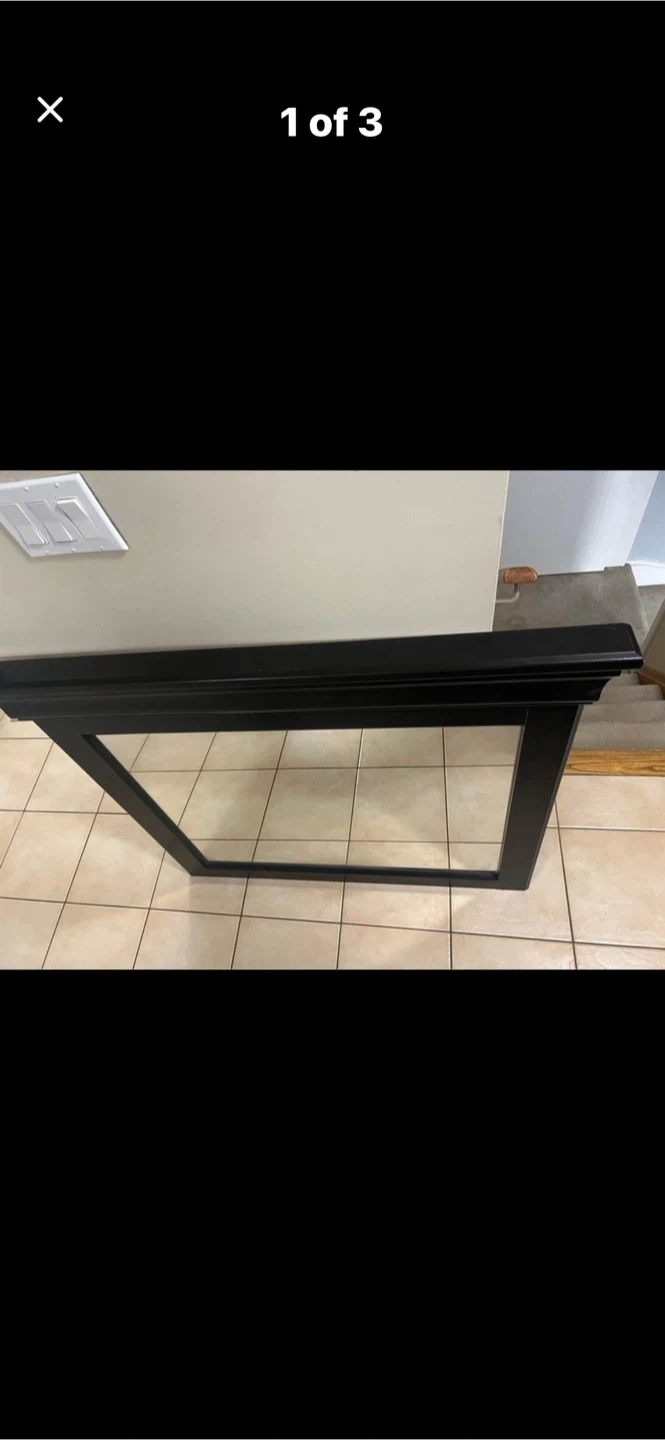 A black dresser mirror is available. It's a good size . Includes two wooden mounting pieces. Possibly for above fireplace mantel also . Solid and heavy .