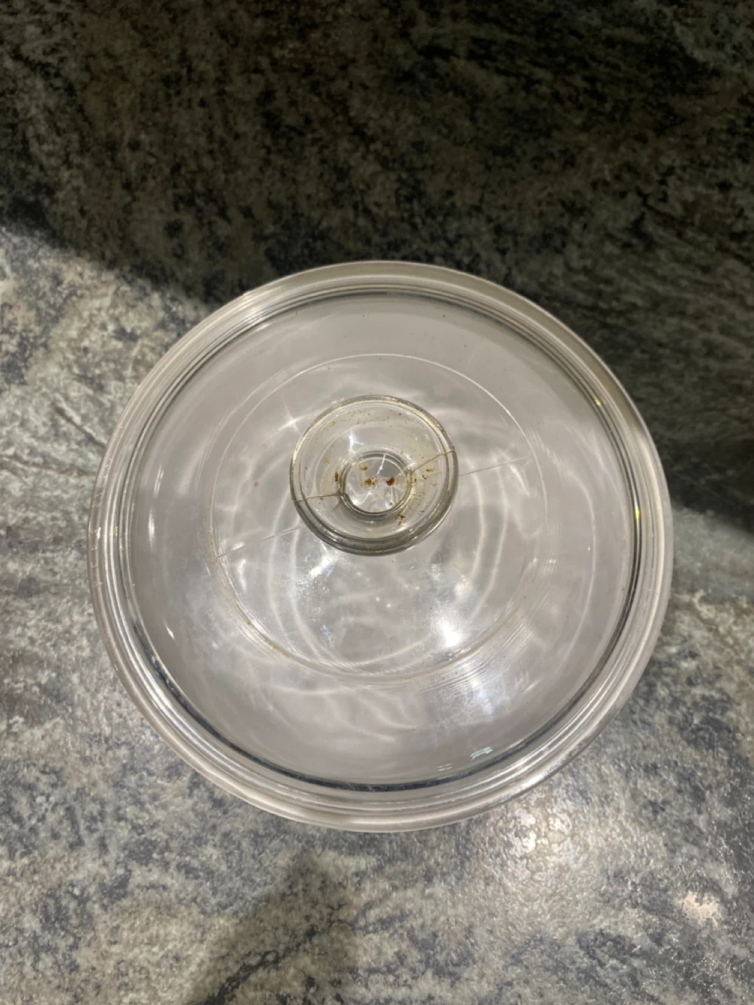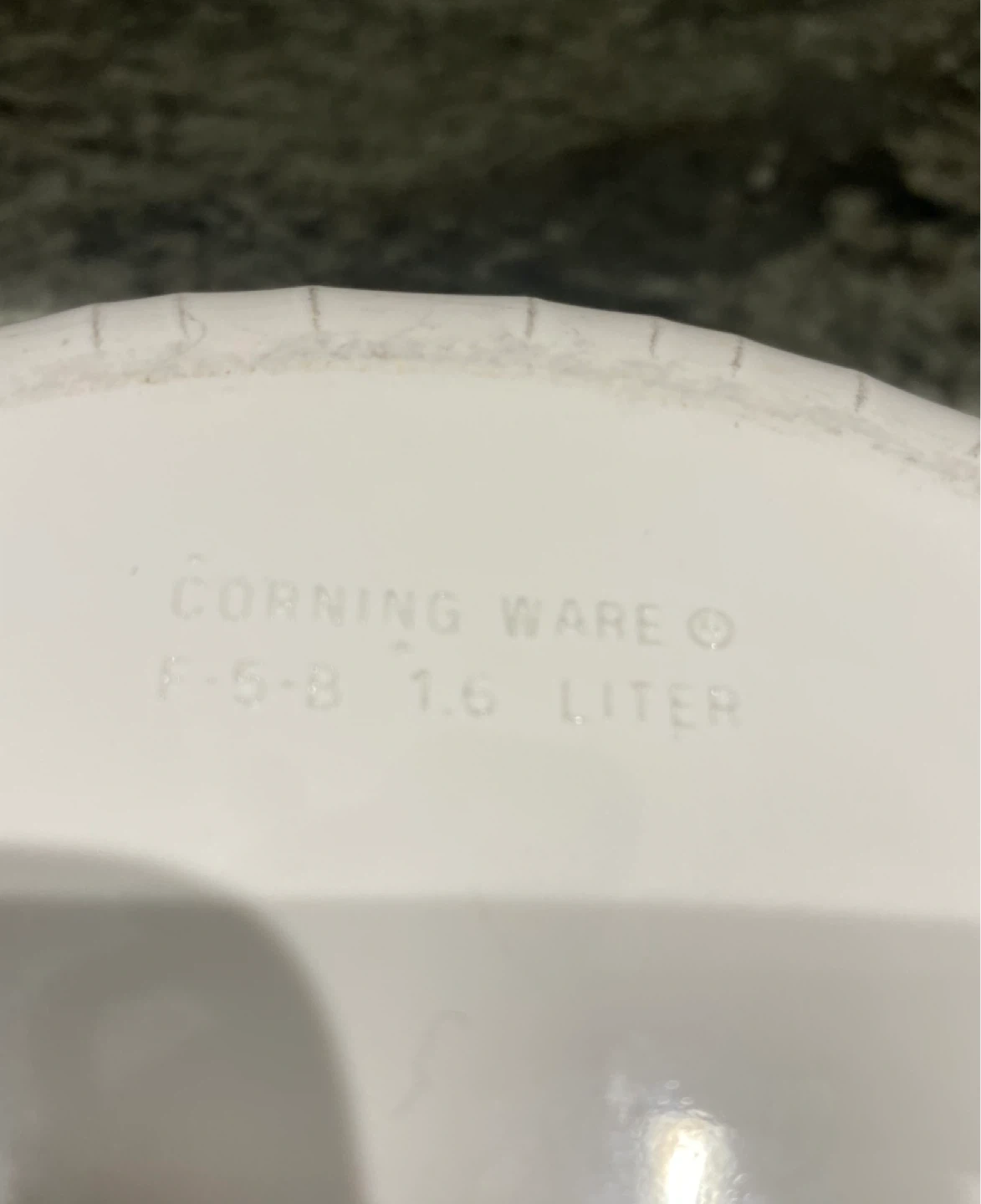 This is a CorningWare casserole dish with a 1.6 liter capacity. It includes a clear glass lid. Dishwasher safe and oven safe.