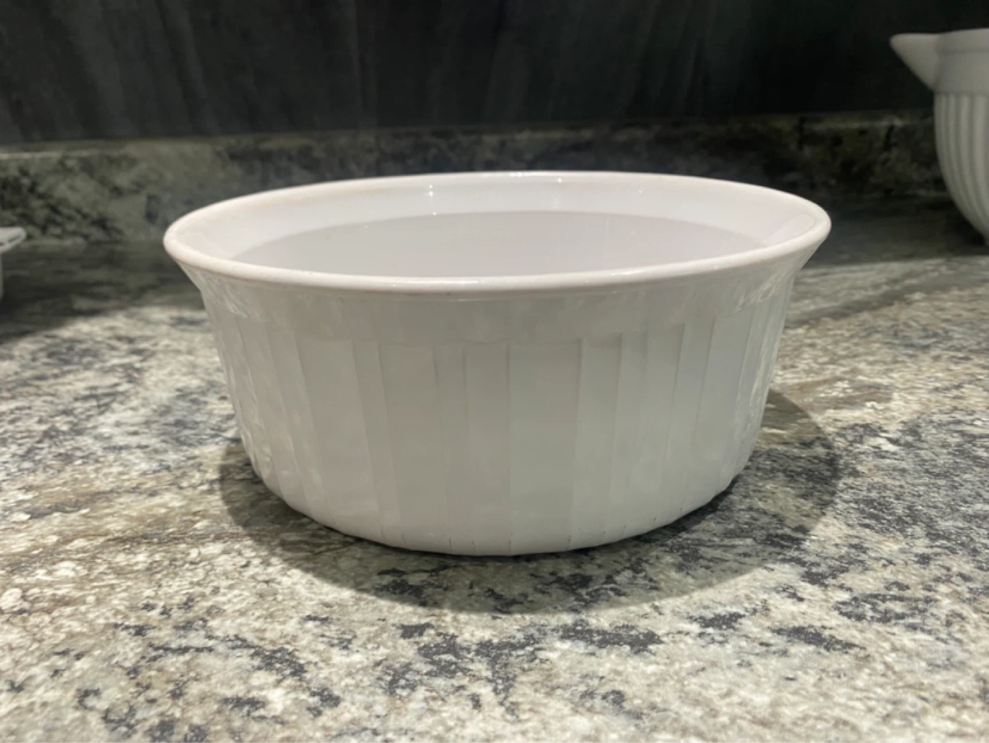 This is a CorningWare casserole dish with a 1.6 liter capacity. It includes a clear glass lid. Dishwasher safe and oven safe.