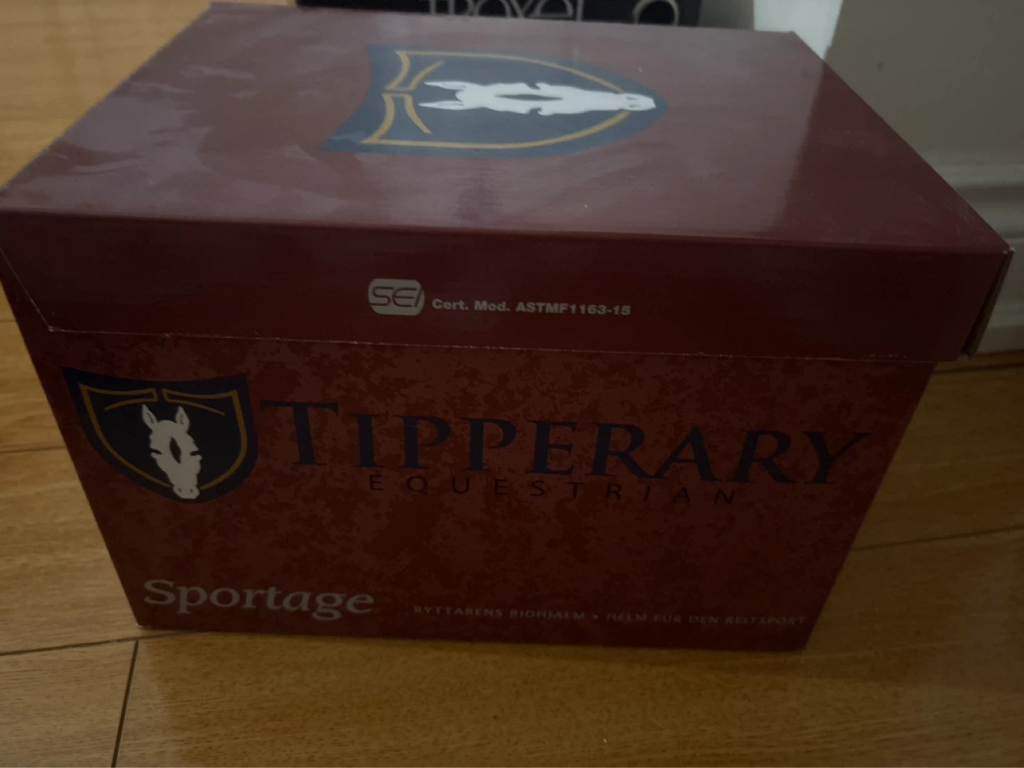 Tipperary Equestrian Portage riding helmet. Black colour. Includes original box. Cert. Mod. ASTM F1163-15. This helmet is designed for equestrian sports.