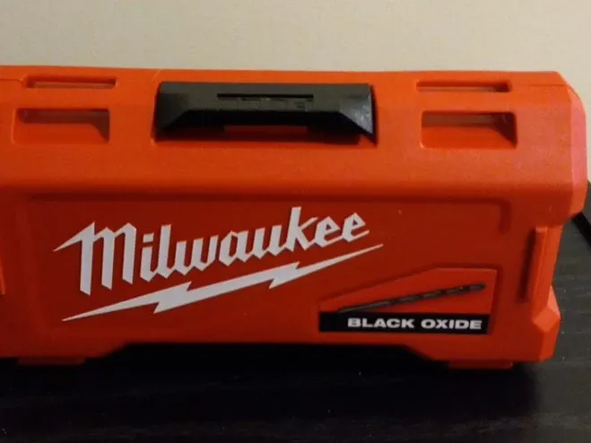 This Milwaukee drill bit set features black oxide coating for durability. It includes various sizes from 1/16" to 1/2" and 1/4" to 1/2". Thunderbolt technology.