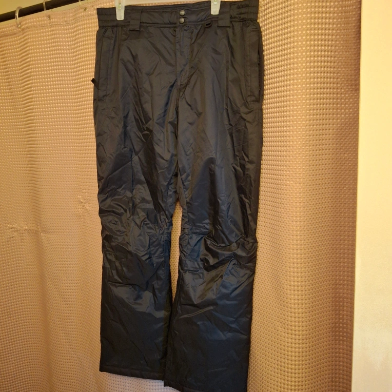 Men's black snow pants. Size Large. Water resistant outer shell. Fully lined. Elastic waistband with drawstring. Side pockets. Good condition.