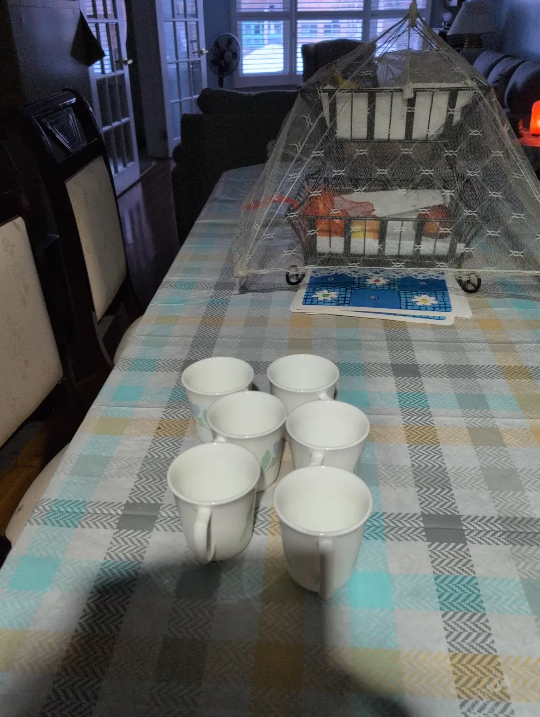 Set of 6 White Mugs with Blue Floral Accent 4dollar each