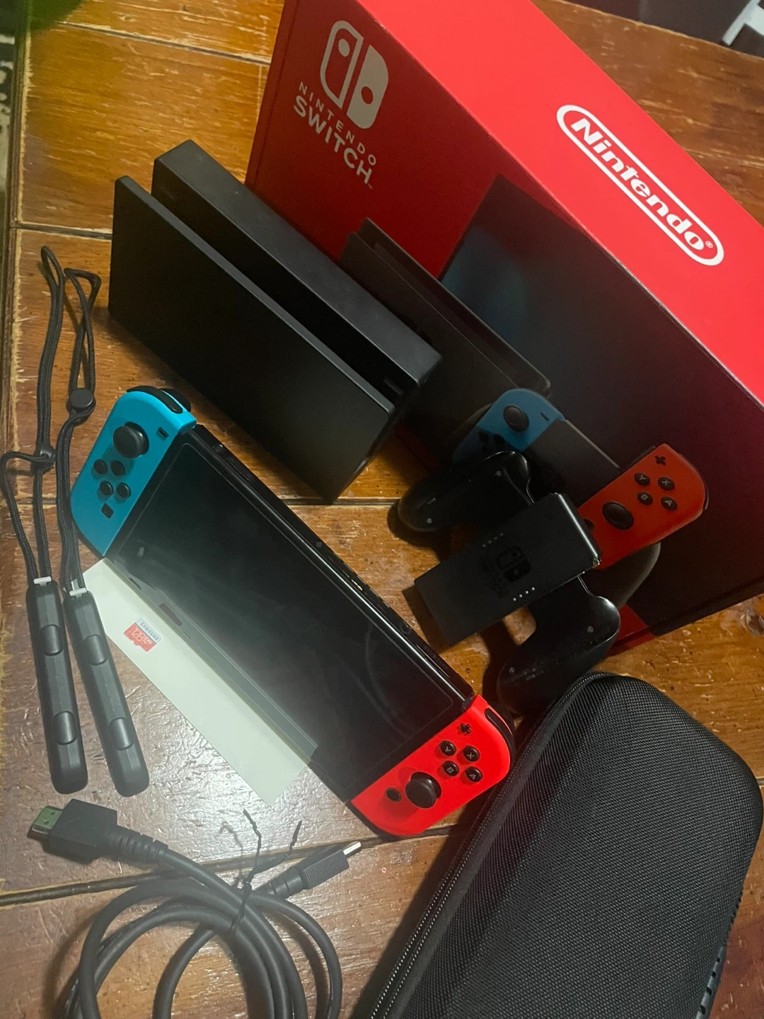 Selling a Nintendo Switch console in great condition! Comes with the original box and all the accessories you see in the picture, including the dock, Joy-Con controllers, straps, Samsung 128 Gb memory card and HDMI cable. Also includes a carrying case for easy portability!
