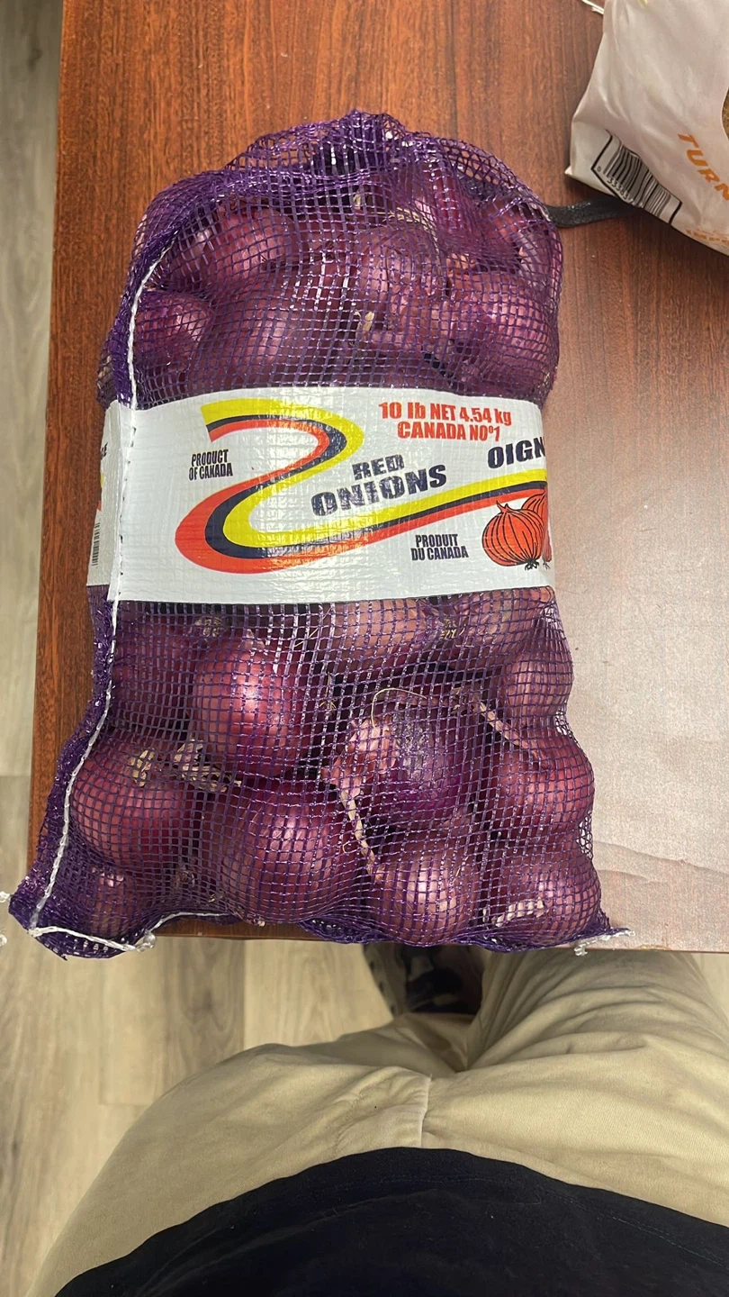 A 10 lb bag of Canada No. 1 red onions. Perfect for cooking and meal prep. These onions are fresh and ready to be used in your favourite recipes! $5:50