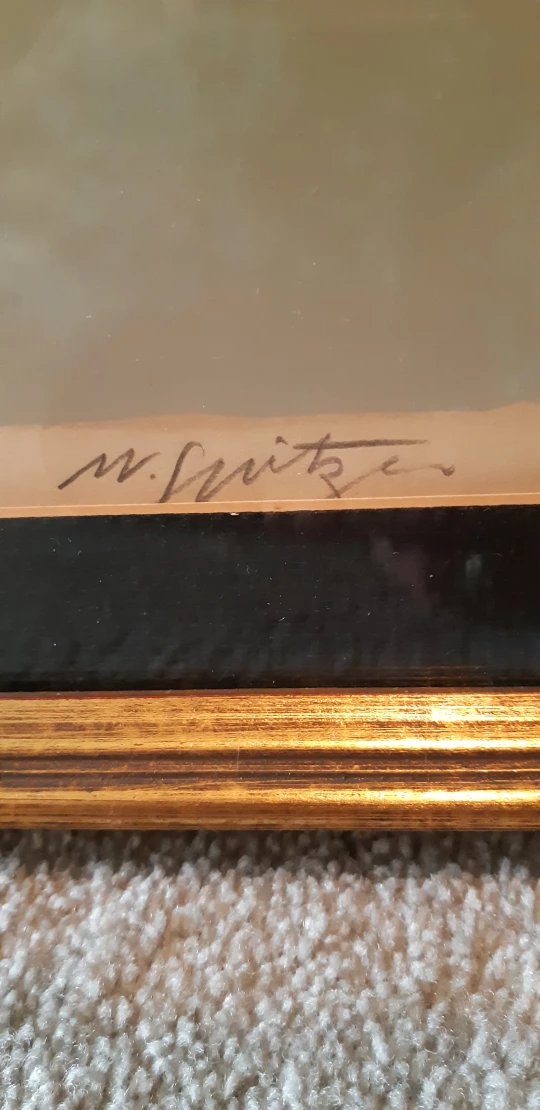 This framed print is by Walter Spitzer, a Polish artist born in 1927.