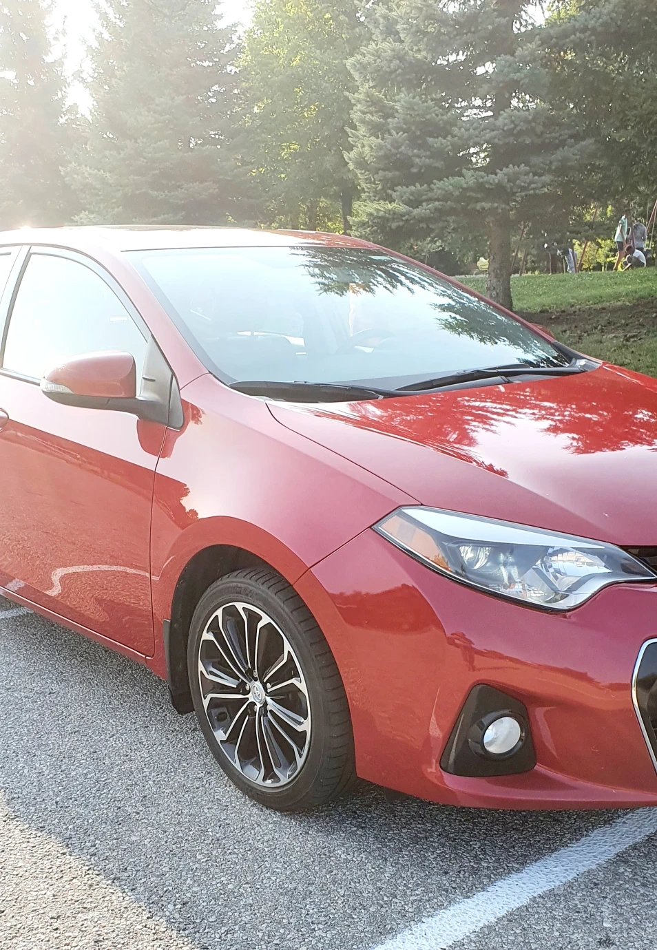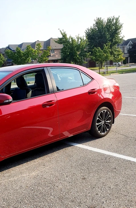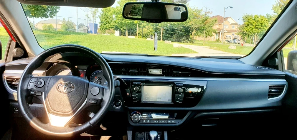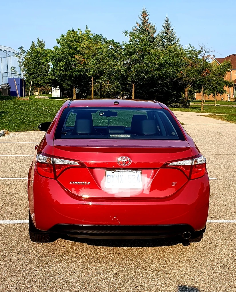 Selling a red Toyota Corolla S 2015 It's in very good condition and ready for a new owner. only 174000km, full option, leather seats, back up camera, navigation, heated front seats heated mirror. minor bruises. the left passenger door got bruised while reversing shown in pictures.