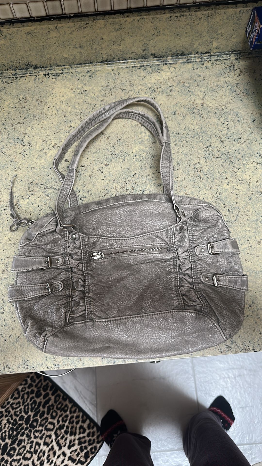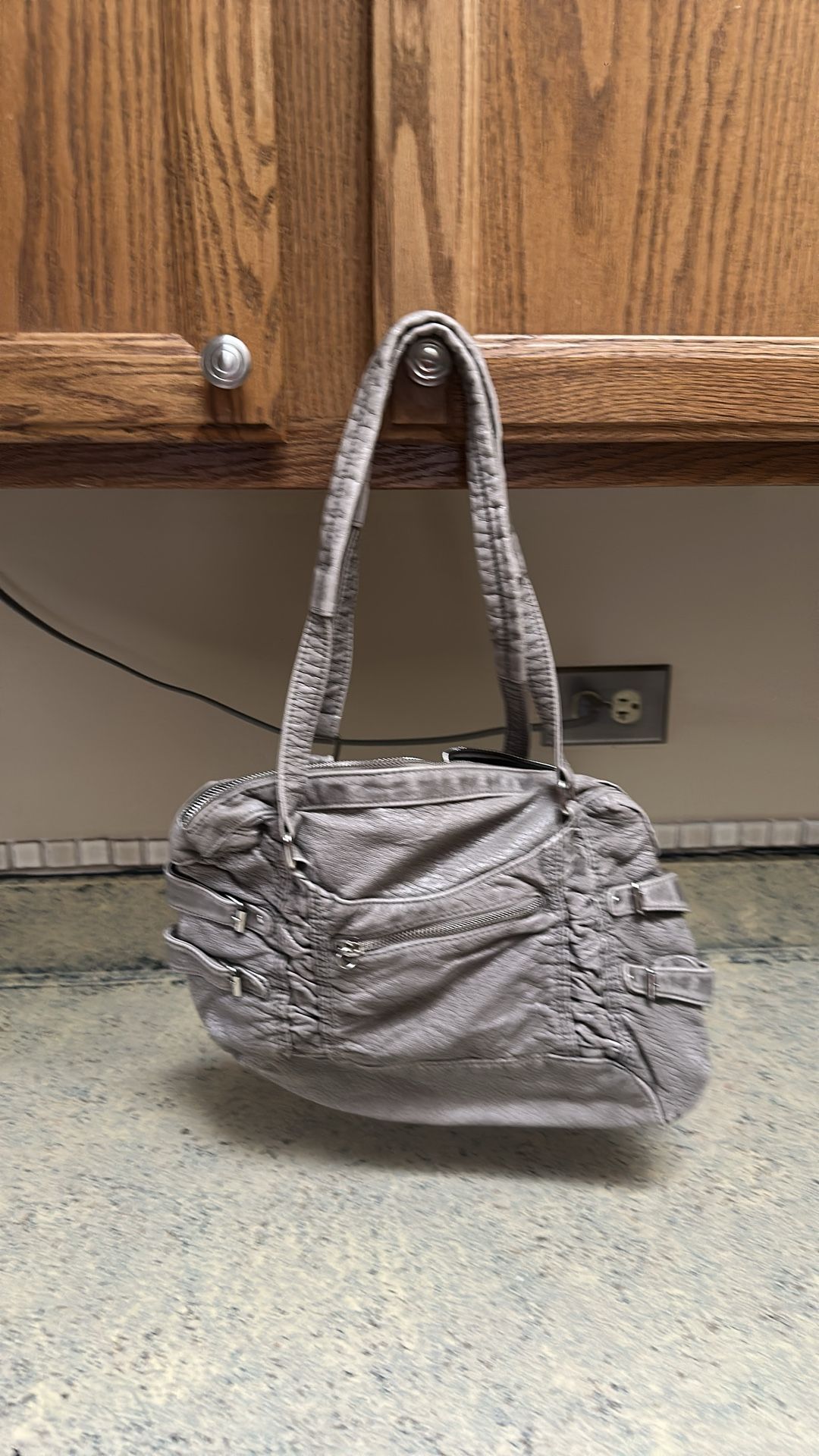 Gray silver zipper used purse shoulder straps