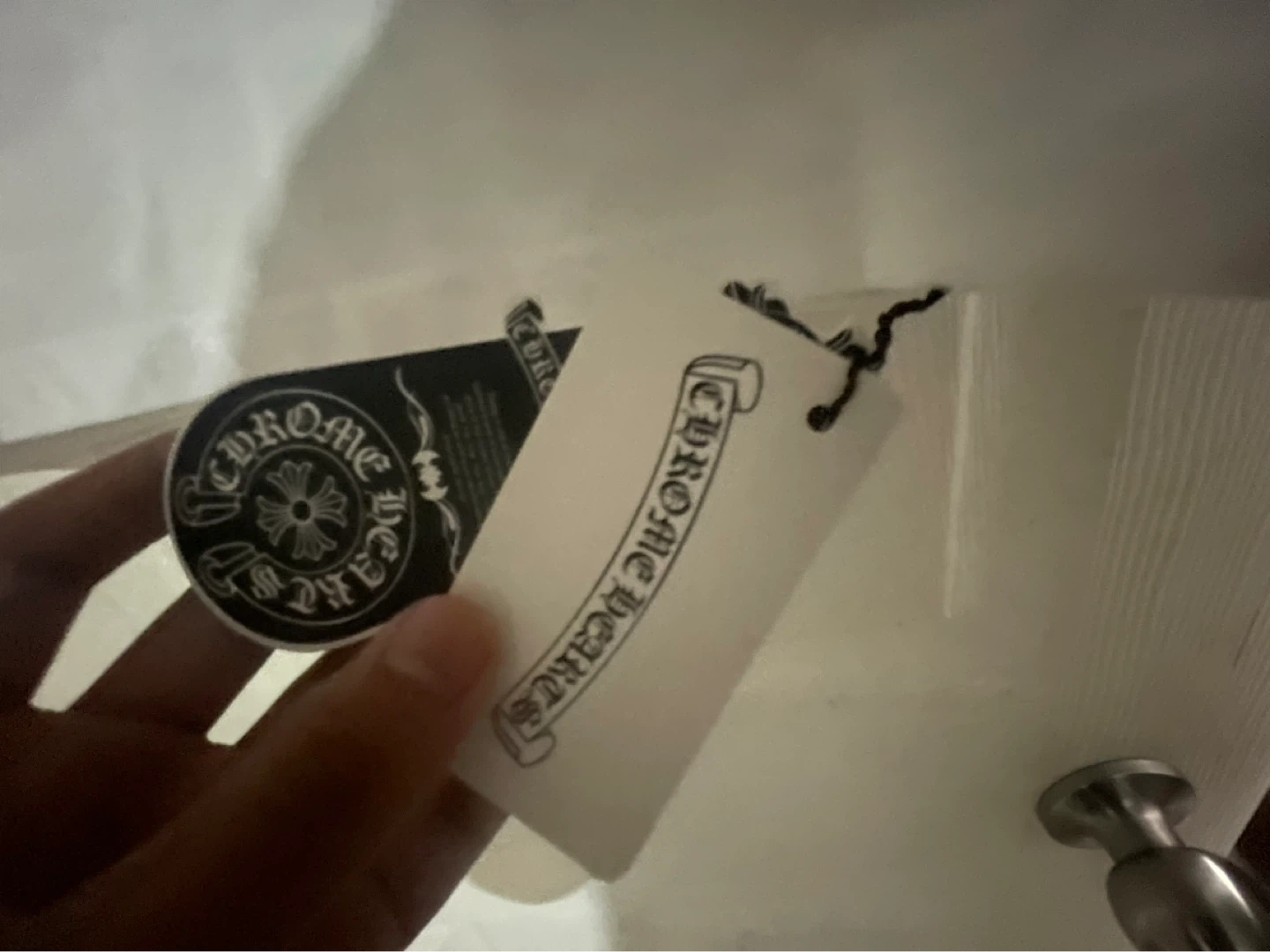 White long sleeve t-shirt with Chrome Hearts logo on the chest and sleeves. Made in the USA. Includes original tags and packaging.