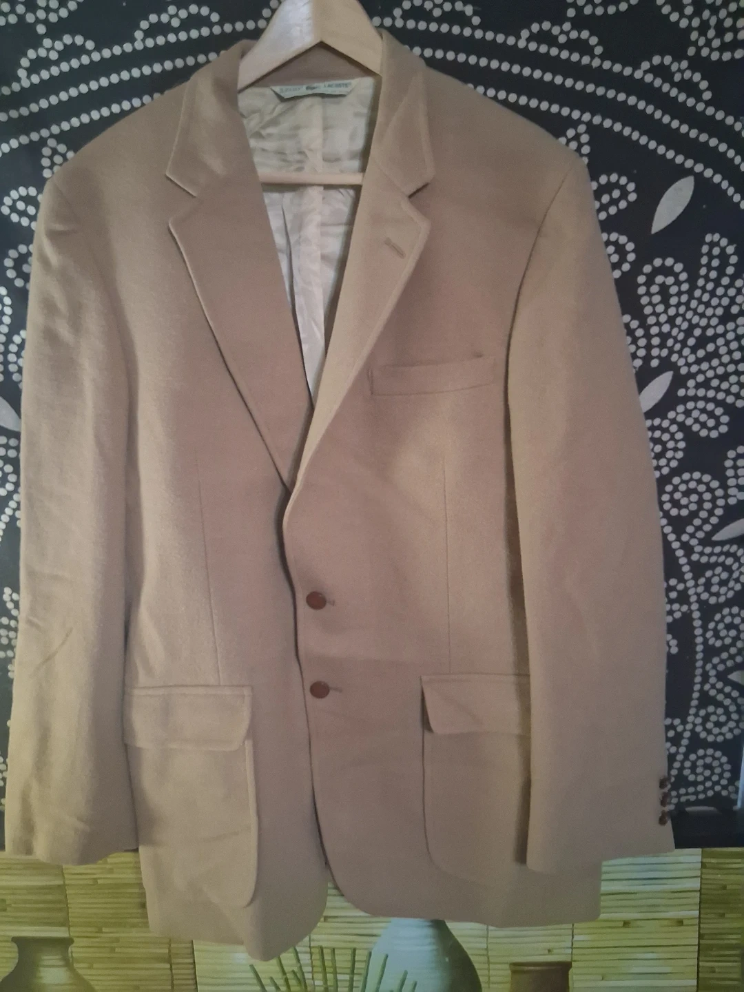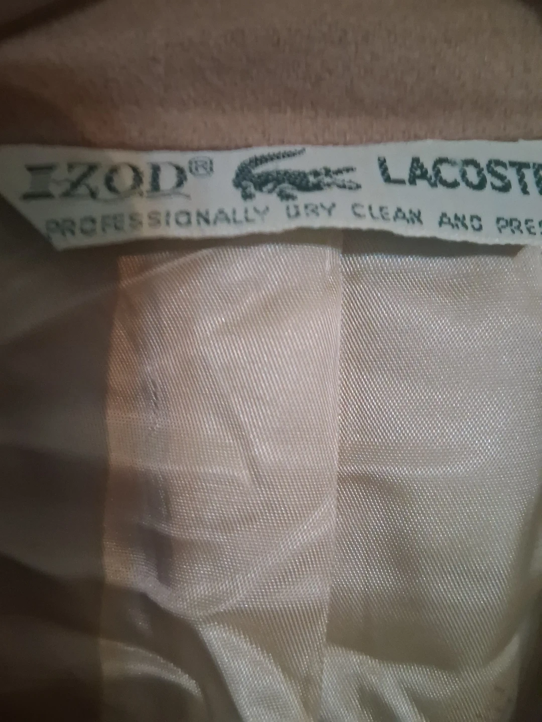 Selling a Lacoste/Murray Hill Collection blazer. It's tailored for B. Altman & Co. on Fifth Ave, New York. It is a tan color.