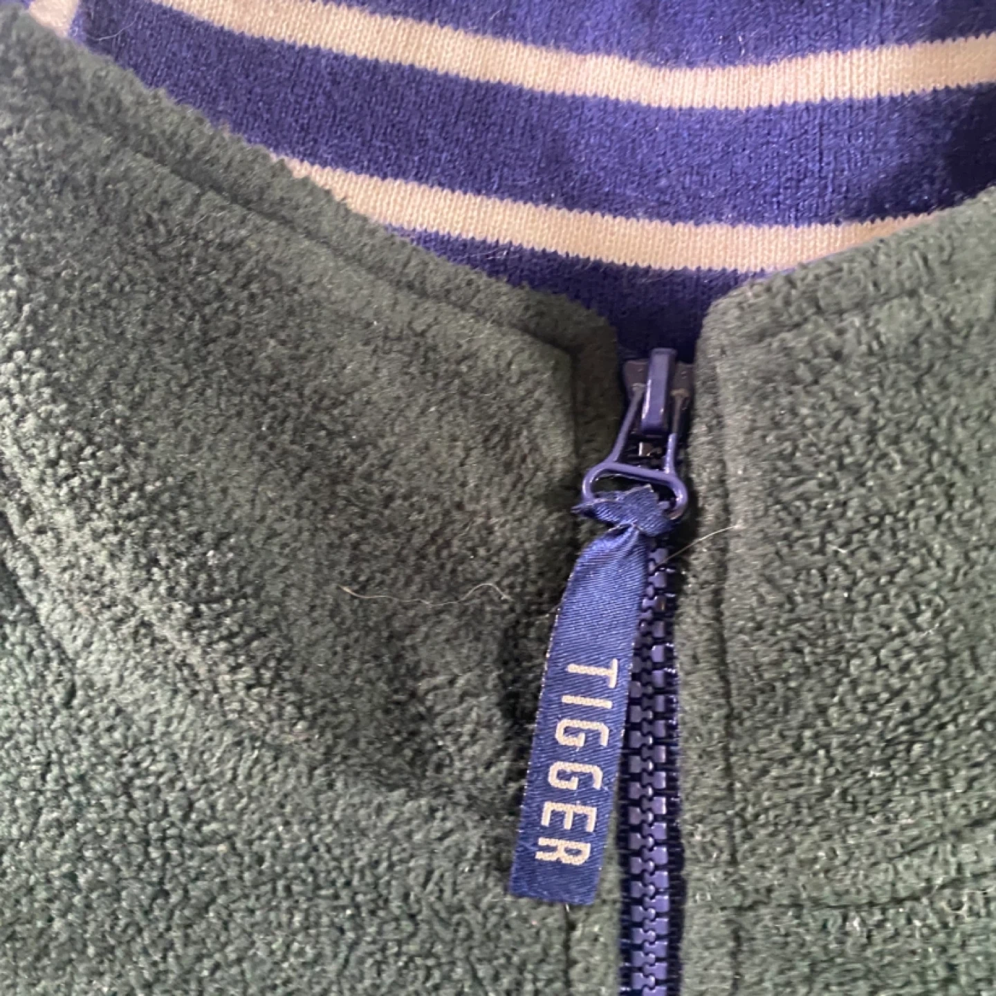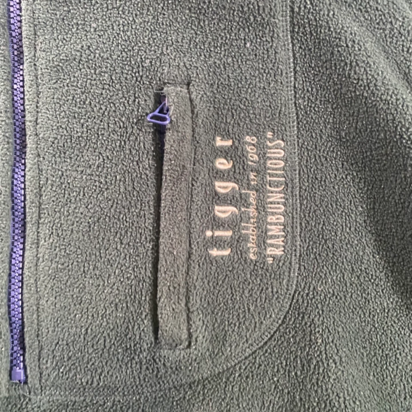Vintage Green Tigger fleece pullover from The Disney Catalog. It's made of 100% polyester with a quarter-zip closure and embroidered Tigger on the sleeve. Size is 2X. Made in Macau.