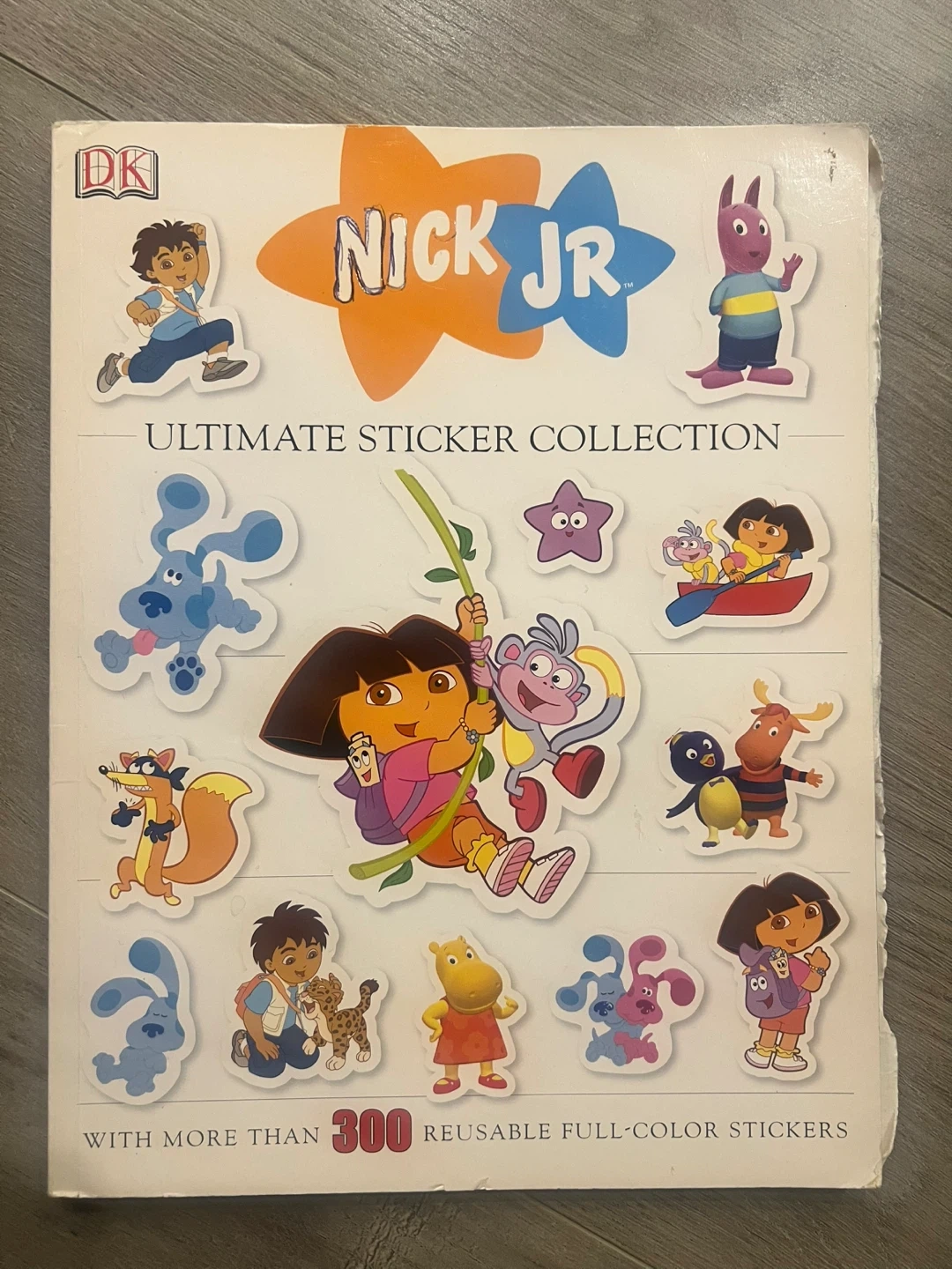 This is the Nick Jr. Ultimate Sticker Collection book from DK. It features characters from Dora the Explorer, Blue's Clues, and The Backyardigans. It has been used and contains a lot of extra full-color stickers! Perfect for young fans of these shows.