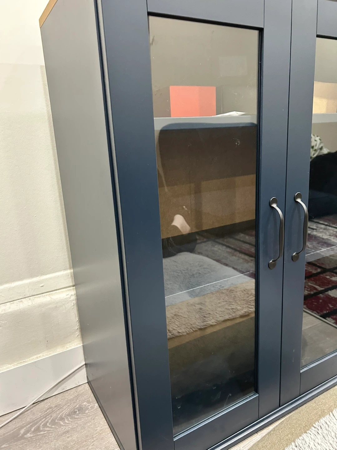 IKEA Dark Blue Two-Door Display Cabinet with Glass Doors
