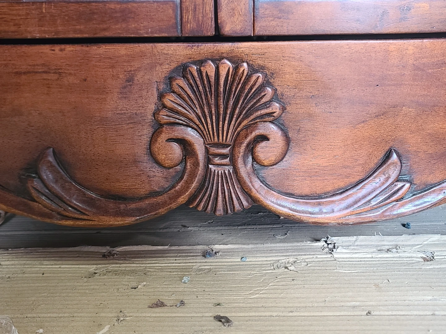 Ornate Carved Wood Dresser and Mirror Set