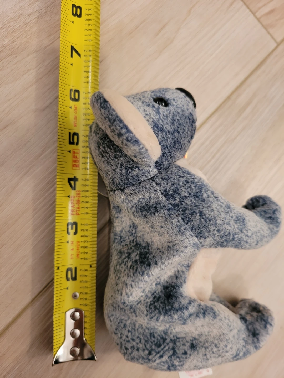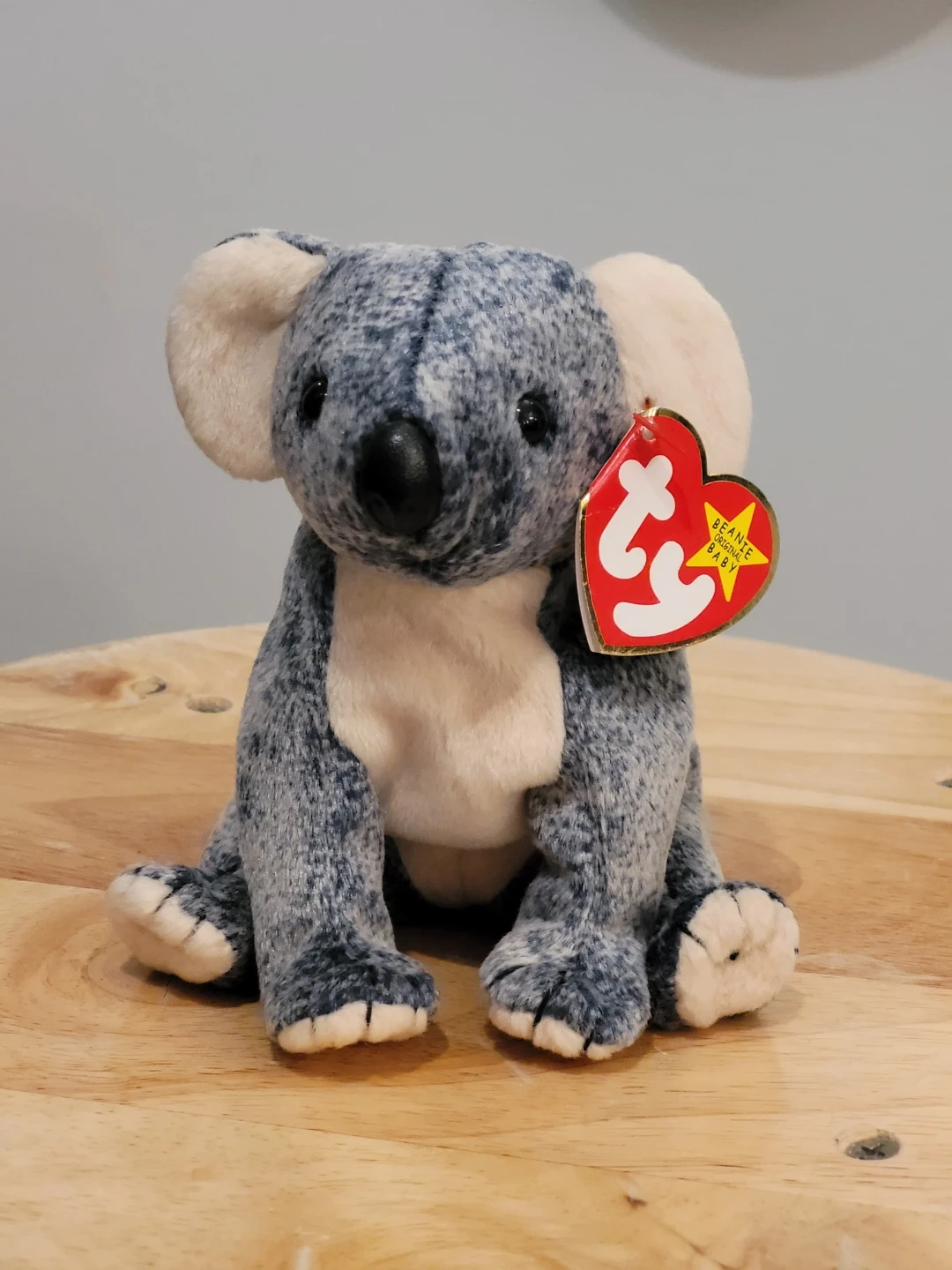 Ty Beanie Baby Eucalyptus the Koala is a retired plush toy from 1999. The toy is mottled gray with a cream-colored belly, paws, and inner ears. Its birthday is April 28, 1999.