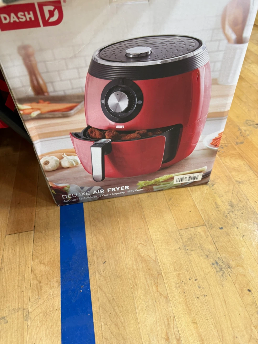 Selling a Dash Deluxe Air Fryer with a 6-quart capacity. It's in great condition and comes with the original box. This air fryer uses AirCrisp Technology and has 1700 Watts of power, perfect for quick and easy meals!