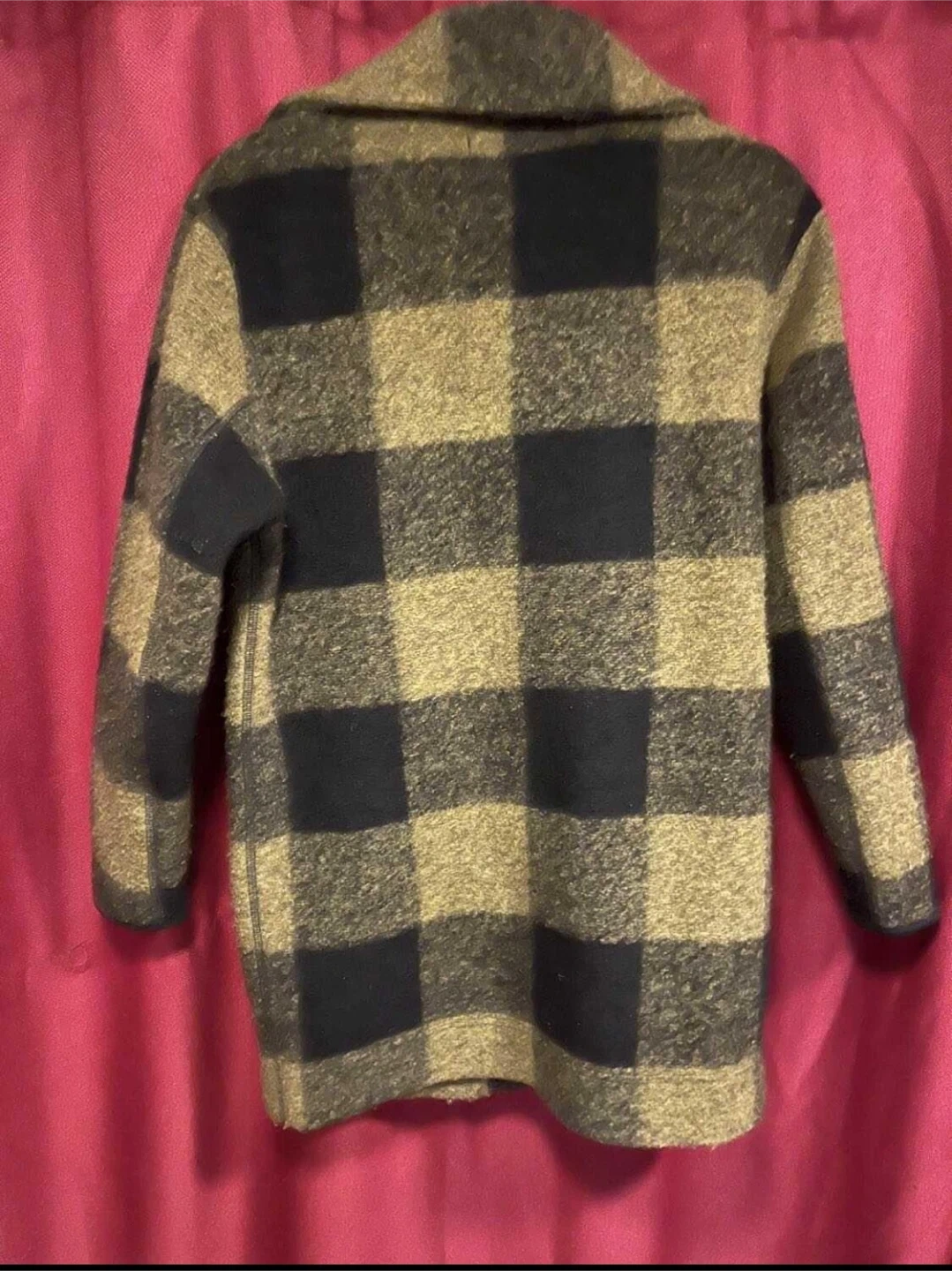 Size extra small but for like a roomie small. has side pockets and zip up. Longer styled jacket above knee