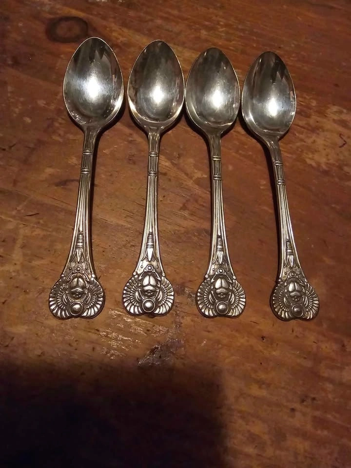 Buy & SellEgyptian Revival Scarab Beetle Spoons SetEgyptian Revival Scarab Beetle Spoons Set$40Beautiful set of four tea spoons. Silver plate, 1920's Egyptian Revival.WHERE TO MEETThird and MorrisonView MapSELLER333390Valleyway100 reviews0 chats·0 favorites·5 viewsSEND CHAT TO SELLERHi 333390! I’m interested in your listing.Hi 333390! I’m interested in your listing.Get the Karrot app to chatSign In to chat