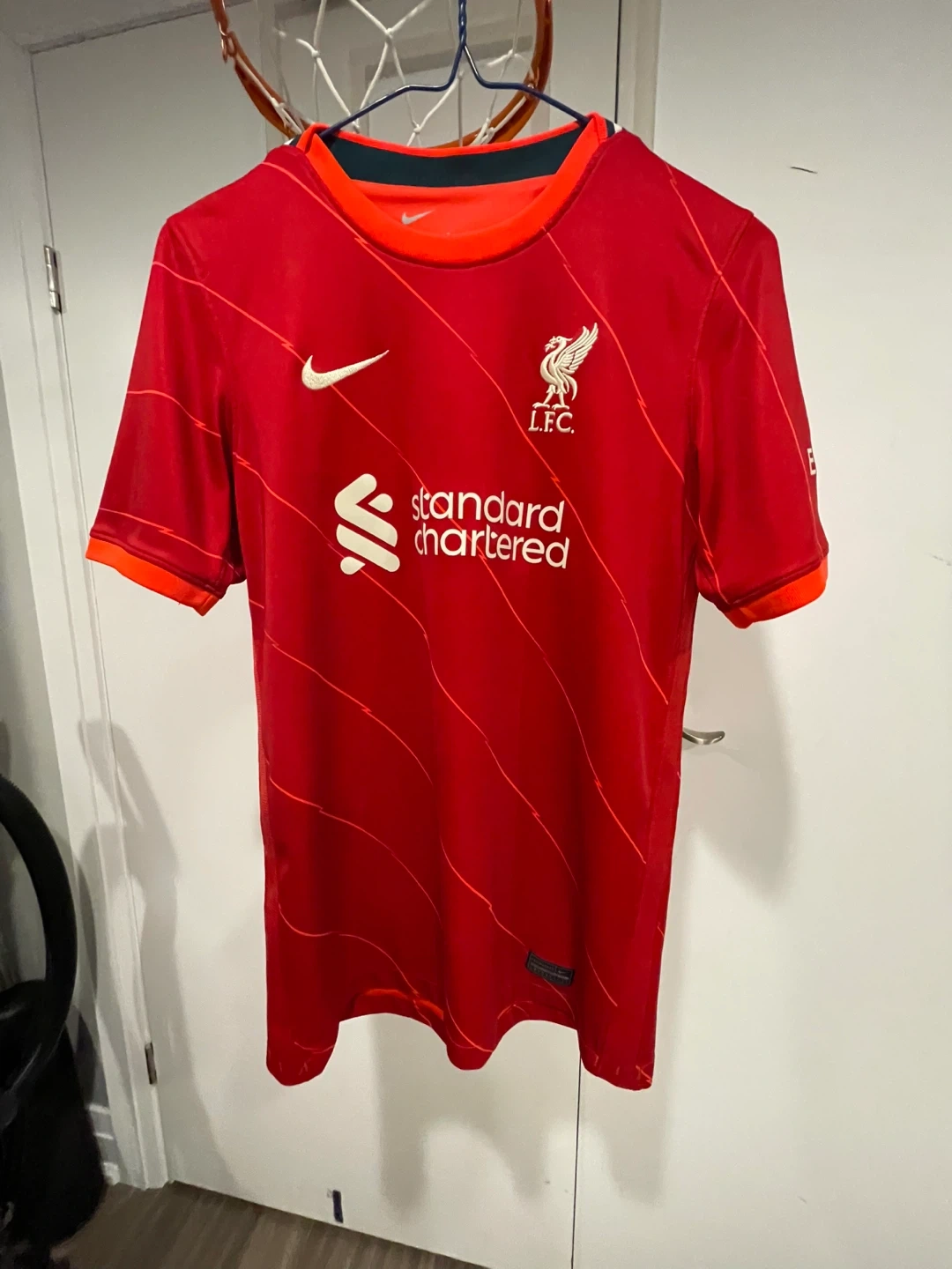 This is a Liverpool FC home jersey from the 2020-2021 season. It is size youth extra large. In perfect condition.