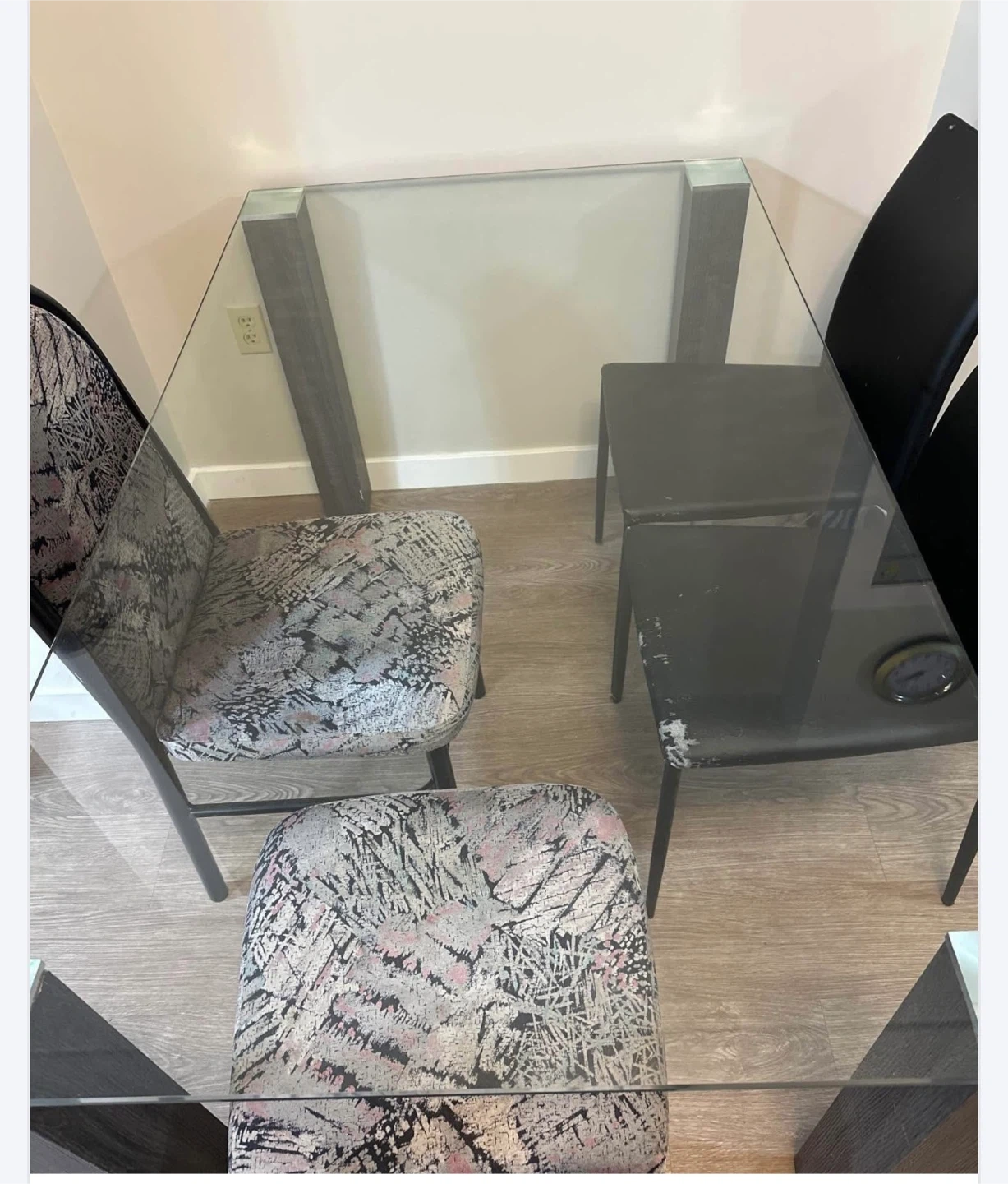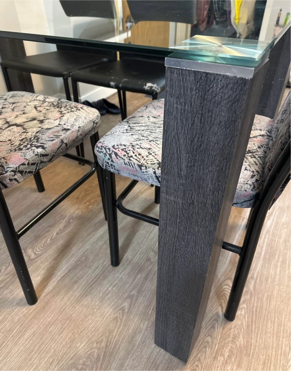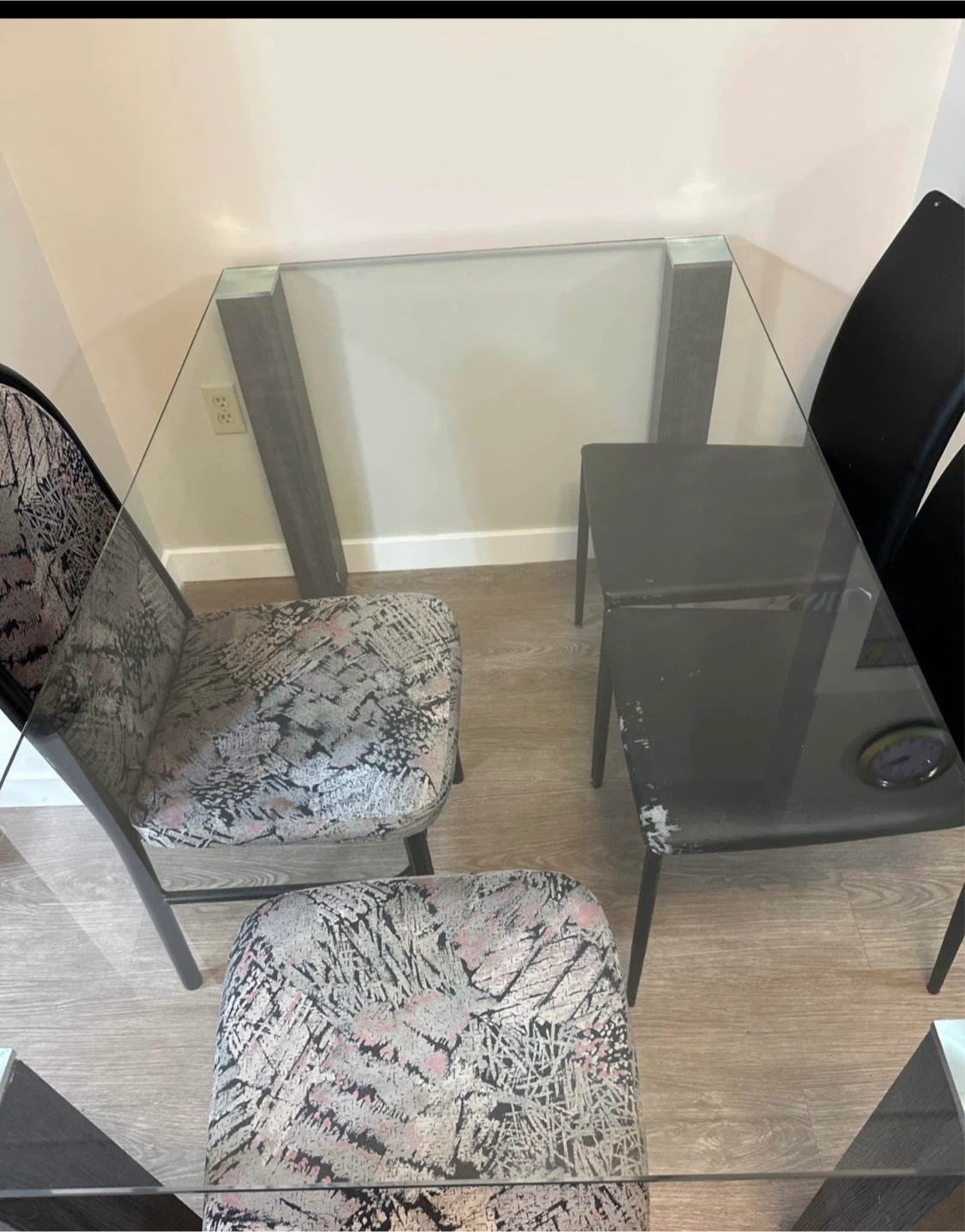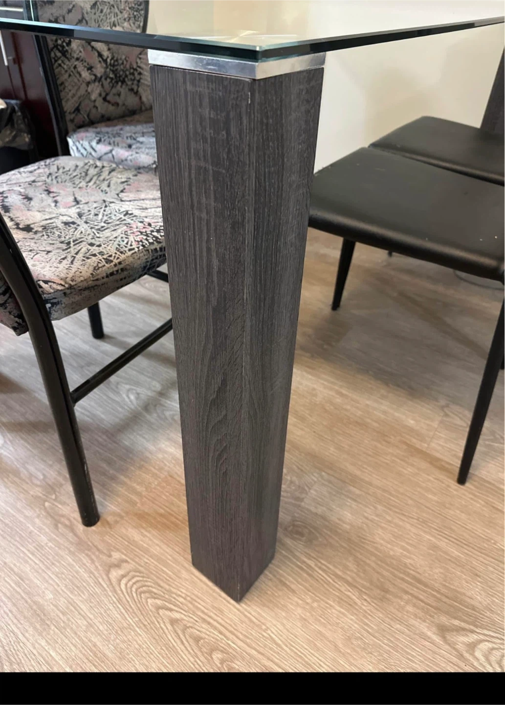 🧡Glass Top Dining Table with Dark Wood Legs