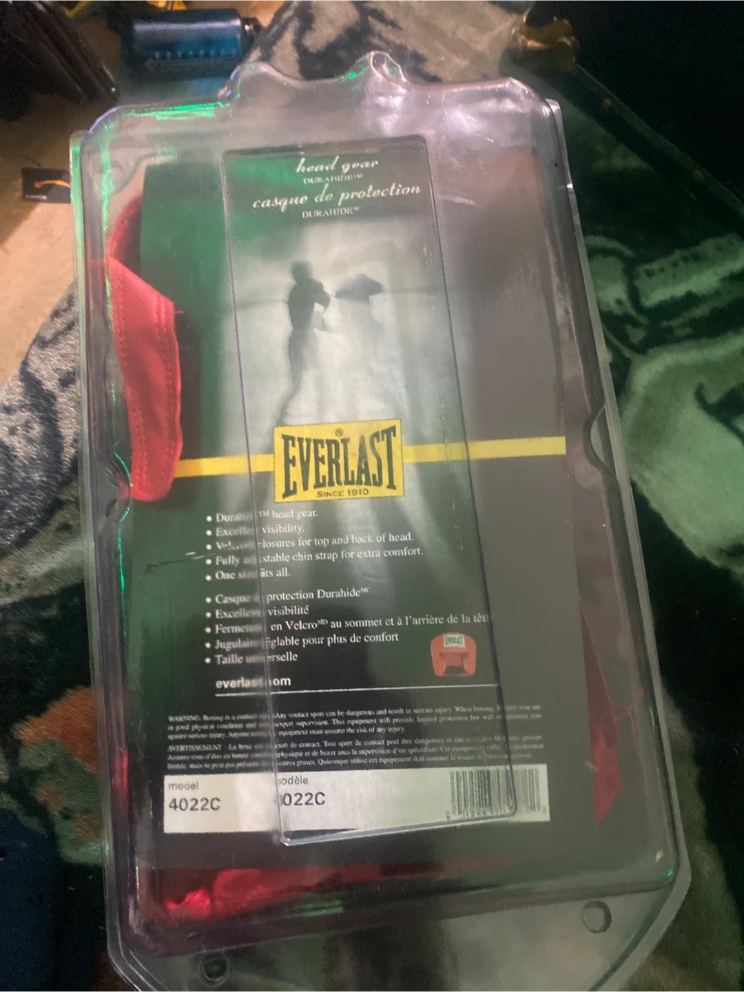 Selling a brand new Everlast Durahide head gear still in its original packaging! It's red and offers excellent visibility and protection for the top and back of the head. It also has a fully adjustable chin strap for extra comfort. Model is 4022C