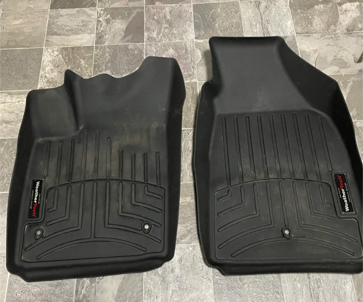 Selling a set of WeatherTech floor mats for driver and passenger in black. These fit a 2016 Fiat 500. They're designed to protect your vehicle's flooring from dirt, mud, and spills. These mats are durable and easy to clean, making them perfect for all weather conditions. Cash only, please.