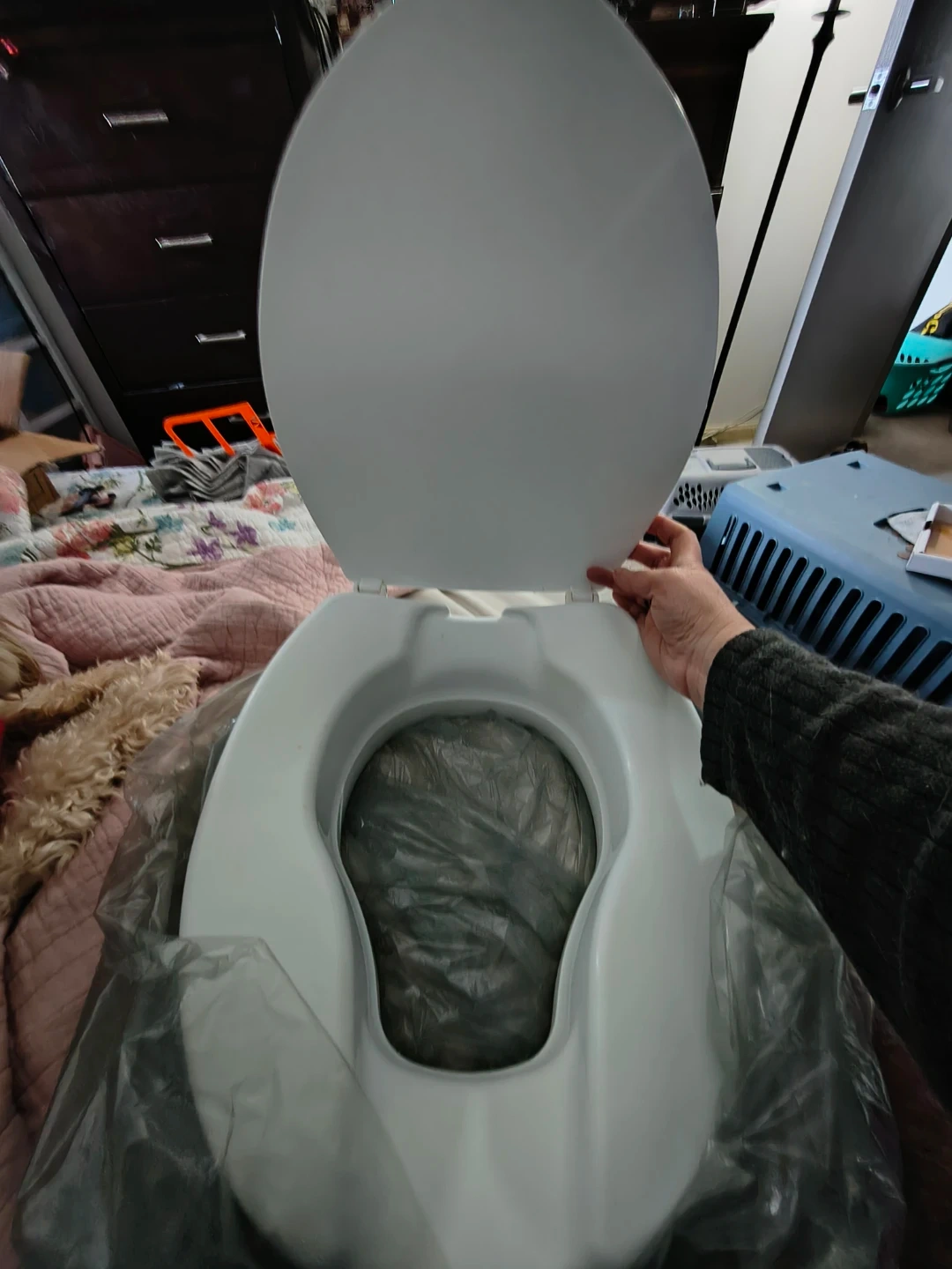 White toilet seat with a lid. It's made of plastic. This would be useful for anyone needing a new toilet seat. Especially for a senior. $20 obo. Cash or e-transfer.