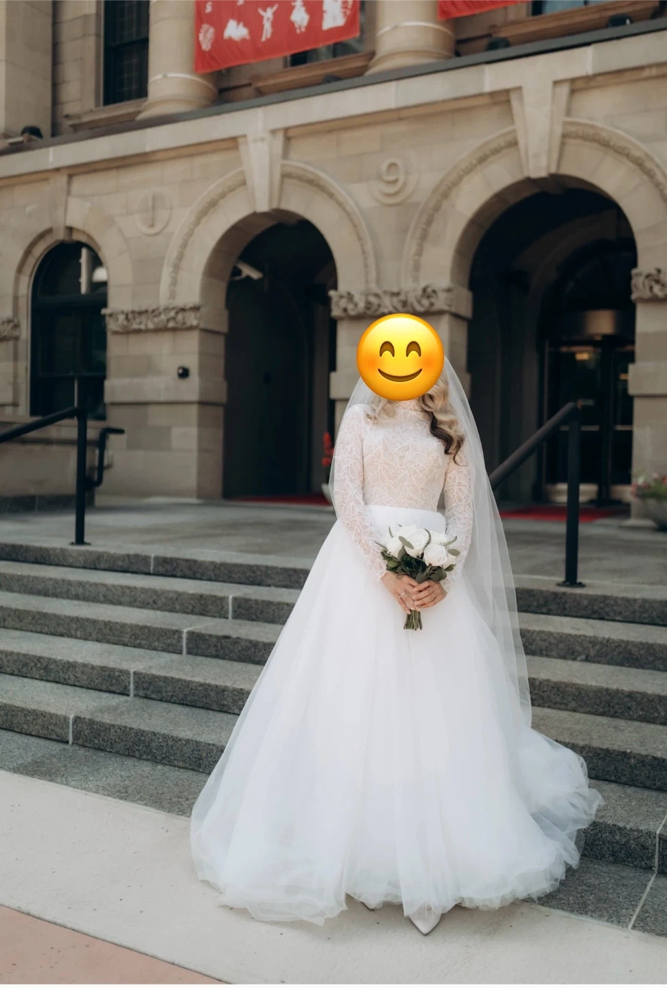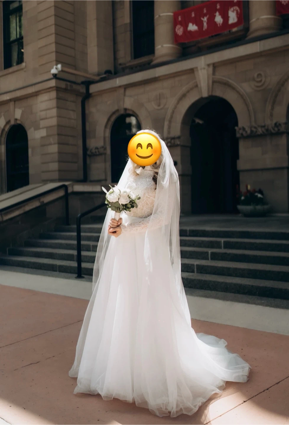 10Wedding dress without defects Size S/M chest size 96 cm max waist size 72 cm max height 180 max floor-length veil included You can try on the dress at Downtown