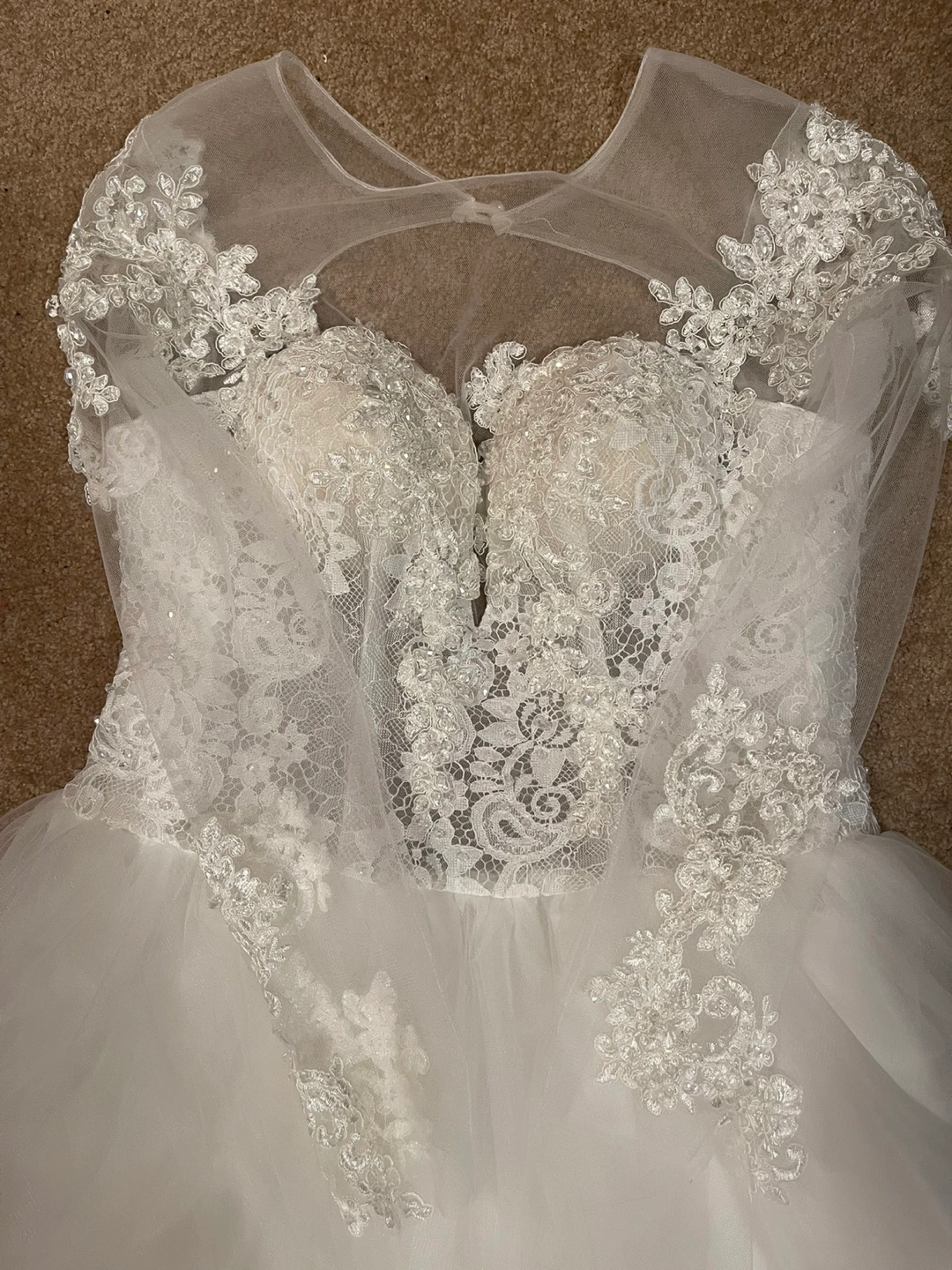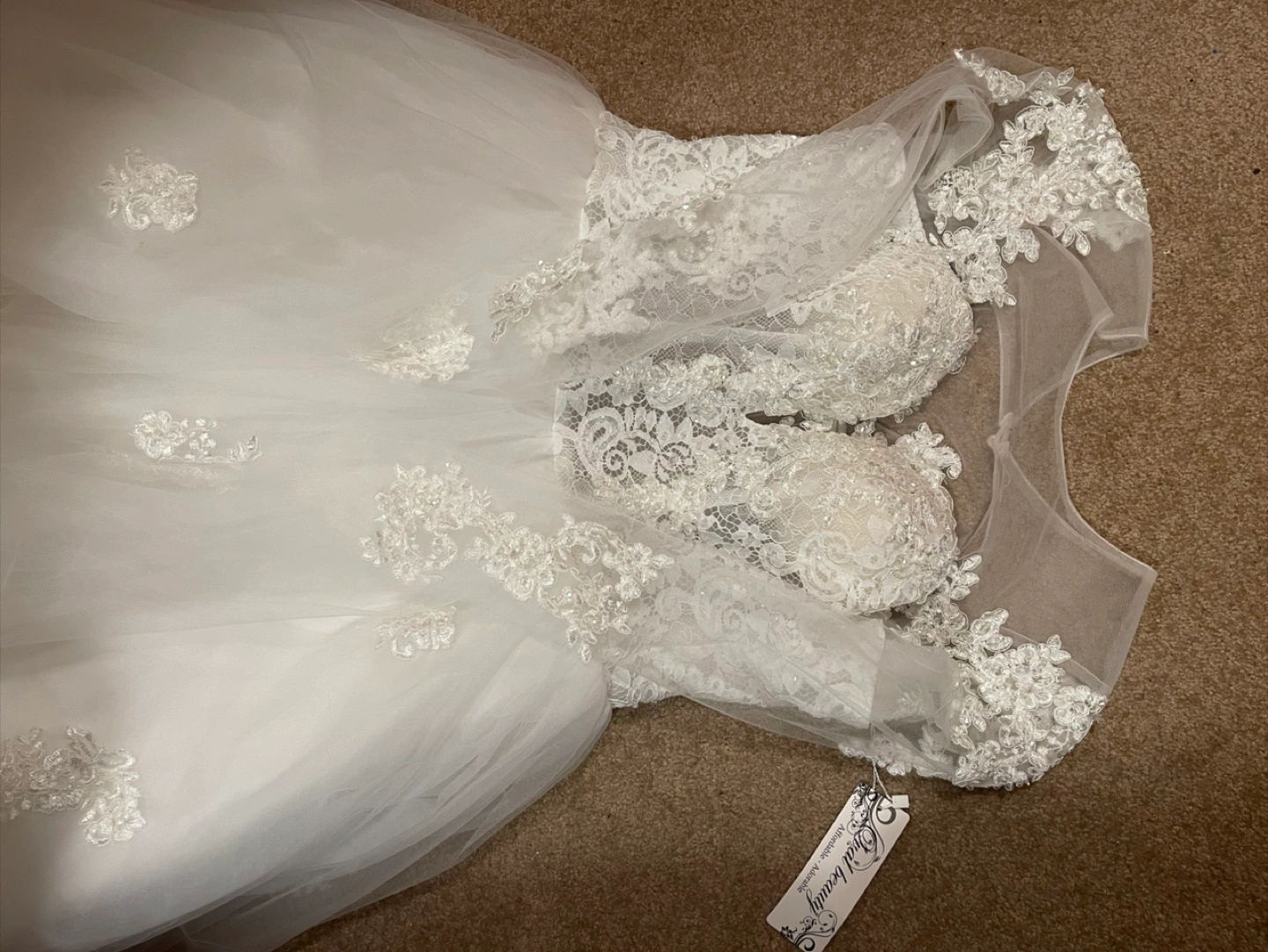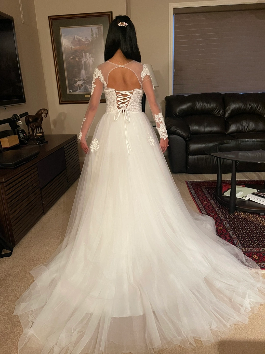 Size 4 or 6 (XS-S) Brand New Elegant design (5 layered gown) Very pretty in person Buy at $xxx (name your price!) Rent at $250 (negotiable) earrings are also for sale at $10 RFS: Originally bought for my wedding but ended up wearing a different gown