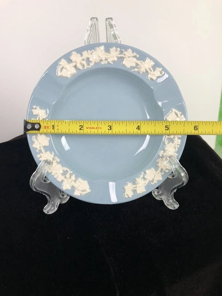 Elevate your table setting with this stunning Vintage 1950's Wedgwood ashtray. Crafted with Wedgwood’s renowned quality, this set adds a touch of timeless sophistication to any home or collection. Details: Maker/Style: Wedgwood, Jasperware style 5.5 inches Design: Light blue body with white relief decoration Type: Ashtray (decorative or functional use) Condition: No visible chips or cracks; good condition Serious inquiries welcome.
