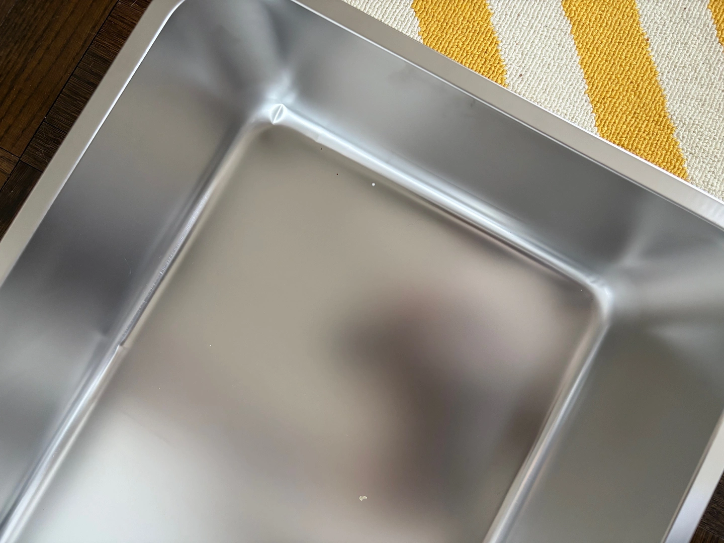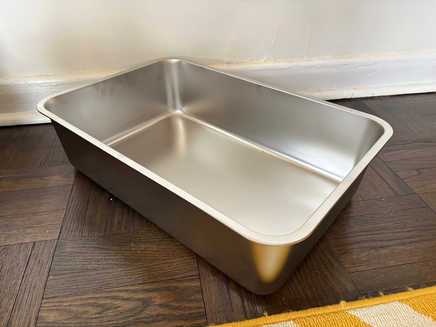 There is a tiny dent in one corner. See pic for the tiny dent. It is brand new. Measurements are: 23.5"L x 15.5"W x 6"H
