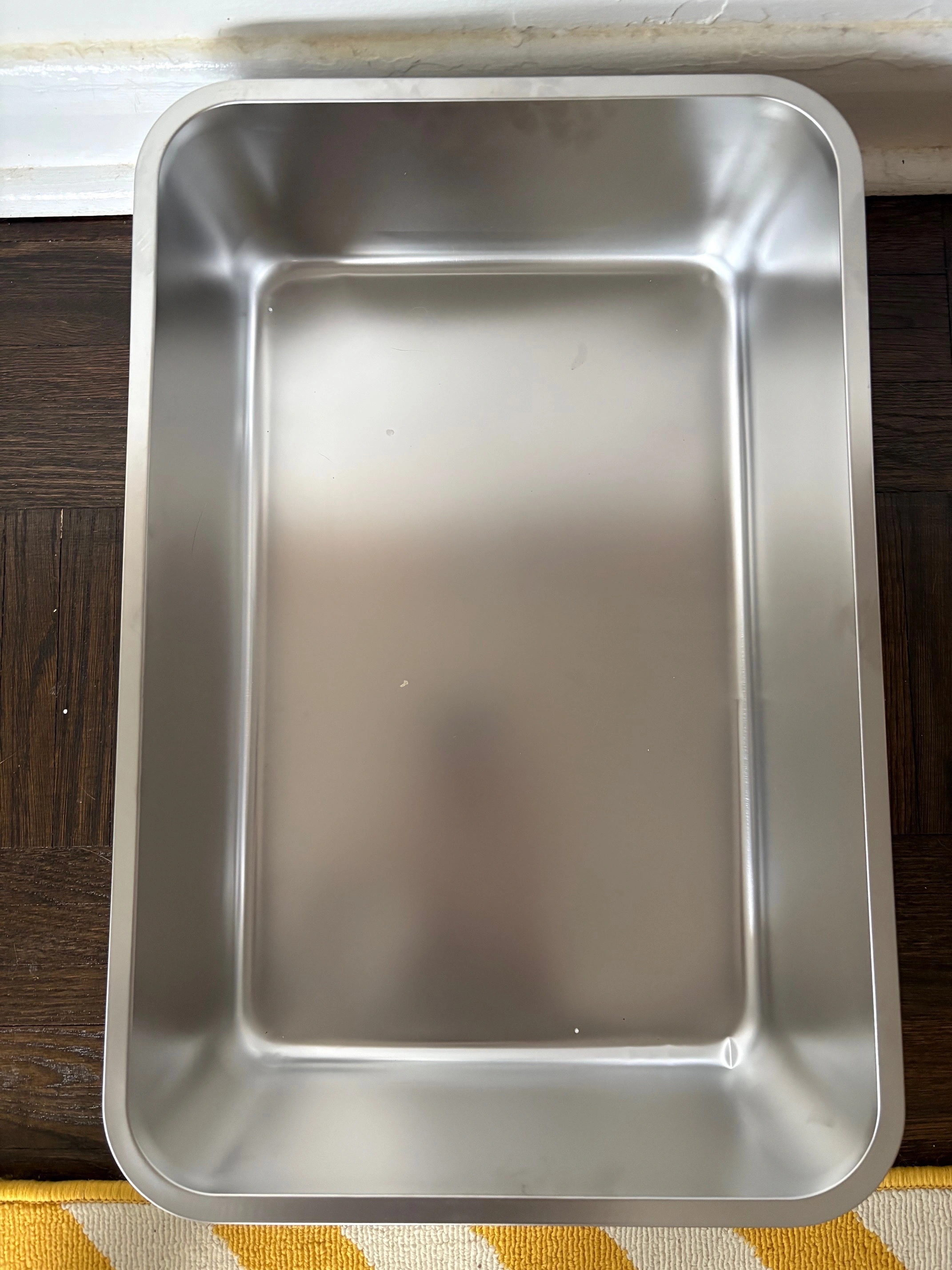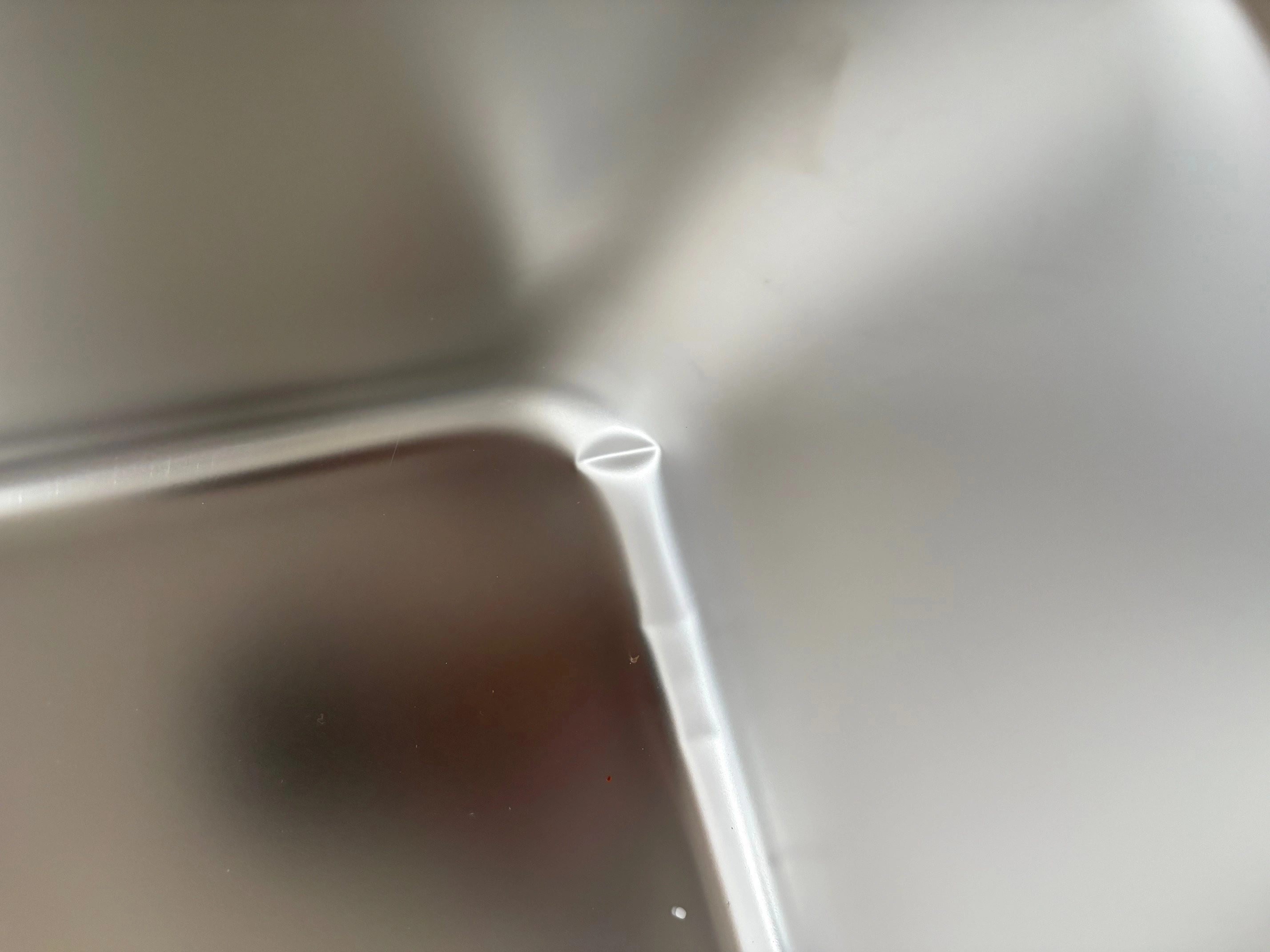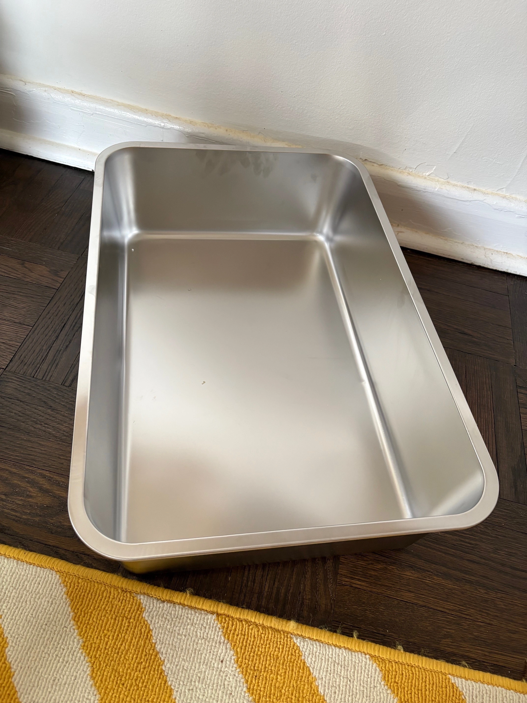 There is a tiny dent in one corner. See pic for the tiny dent. It is brand new. Measurements are: 23.5"L x 15.5"W x 6"H