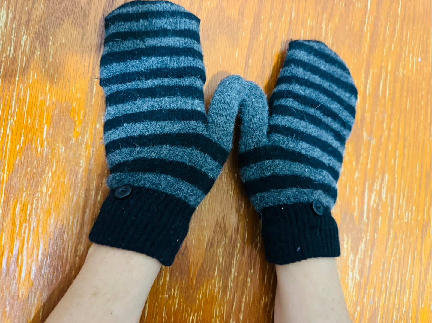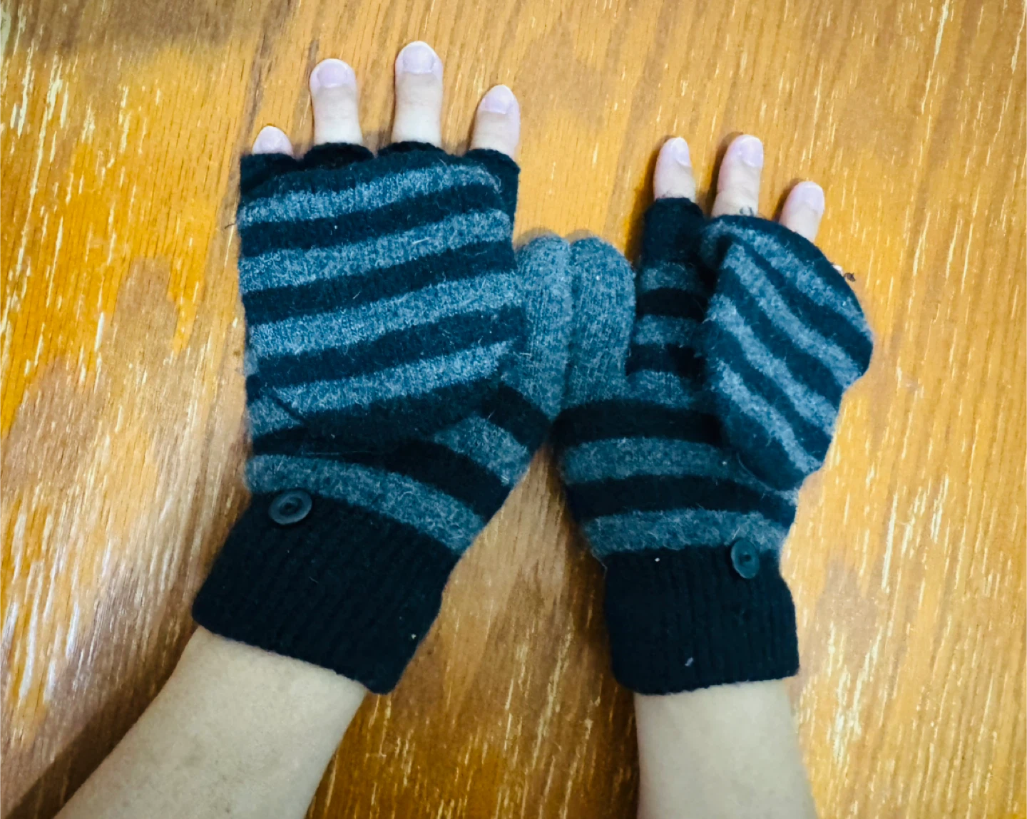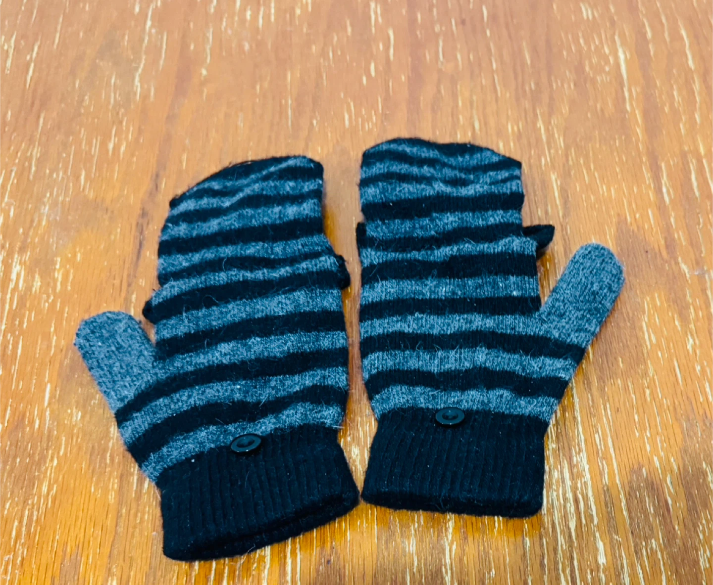 Here are some striped convertible mittens! They can be worn as mittens or fingerless gloves. Perfect for keeping your hands warm while still being able to use your fingers!