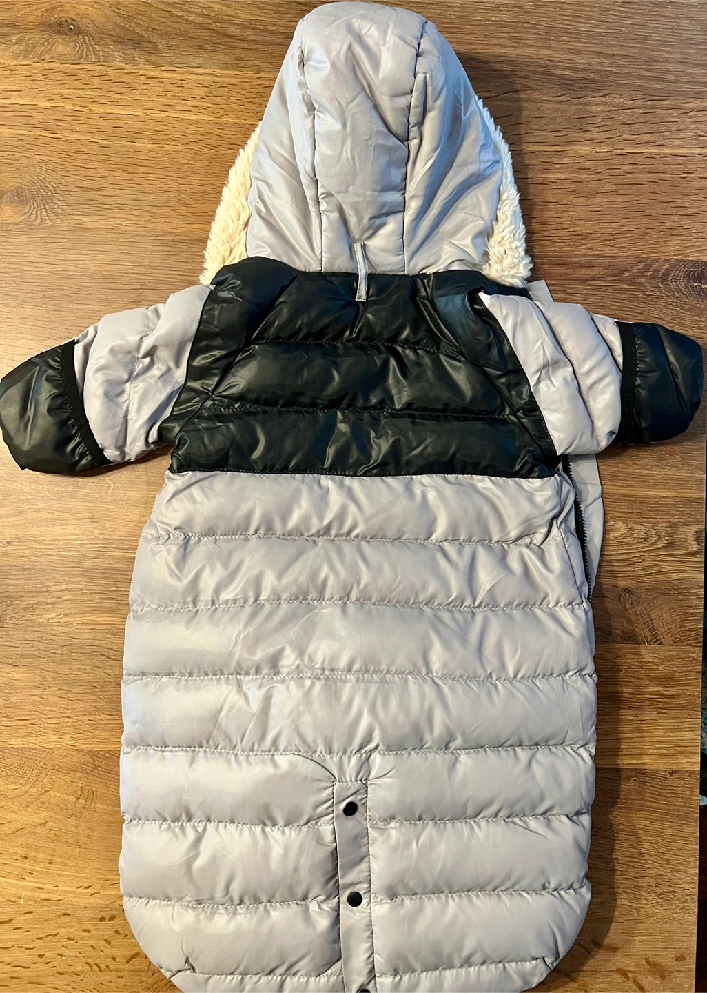 Gently used 7AM Enfant Doudoune. Labeled as 0-3 months. Been looking for the ultimate versatile snowsuit for baby? Your search ends here. The water-repellent Doudoune marries modern style with innovative materials and design. Your little bundles of joy need to stay warm is here: an extra-toasty faux fur–lined hood, faux down insulation, built-in hand covers, soft microfleece lining, and convenient split-leg design for easy changes. Includes removable scarf.