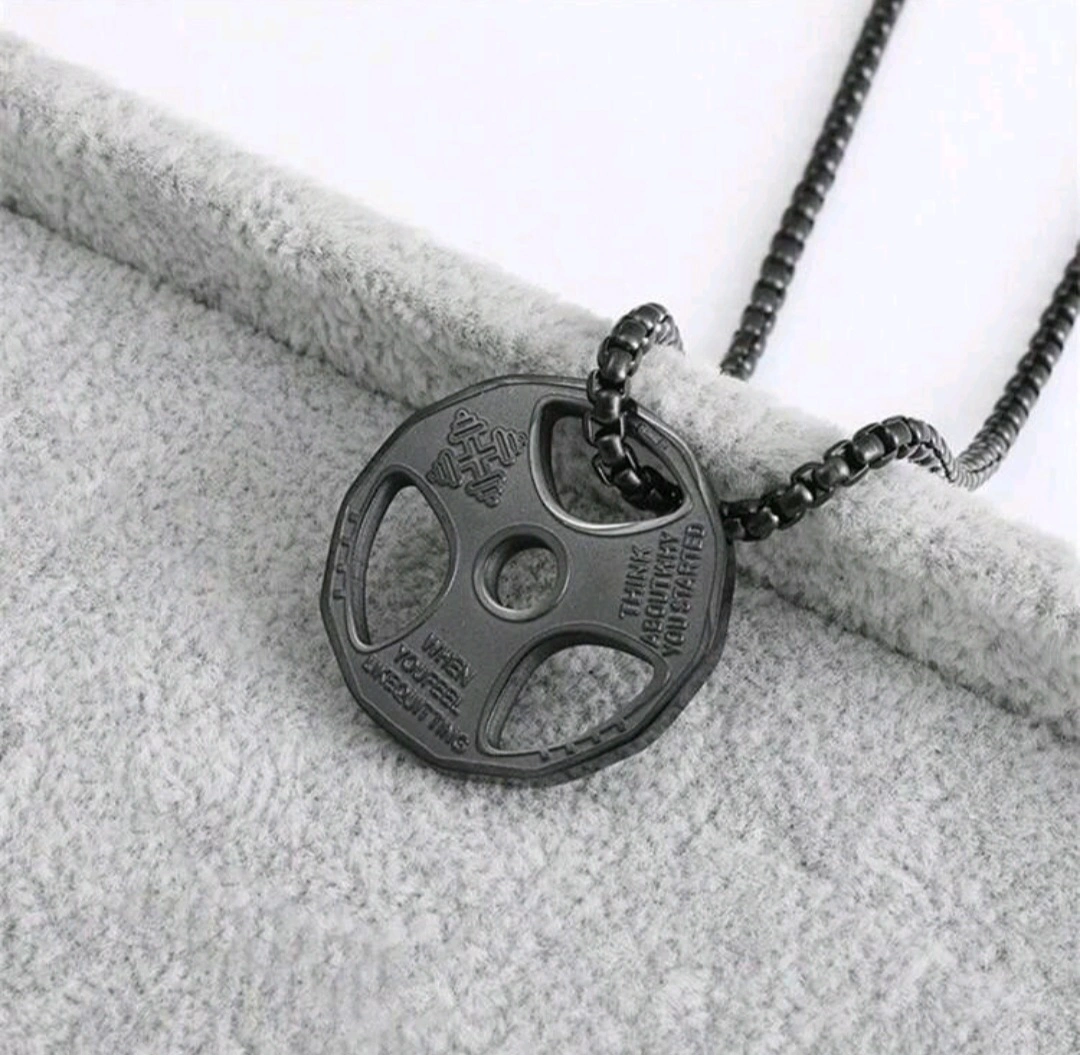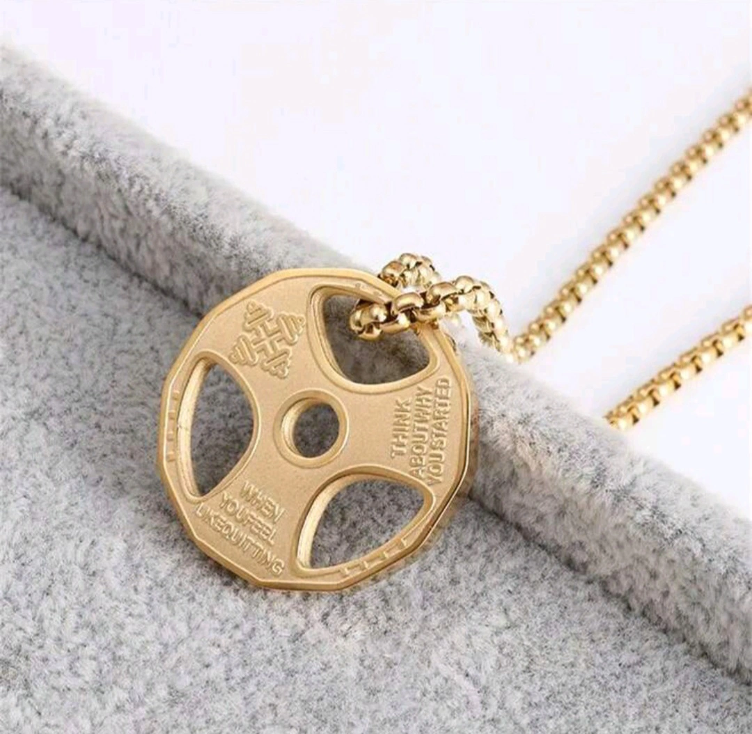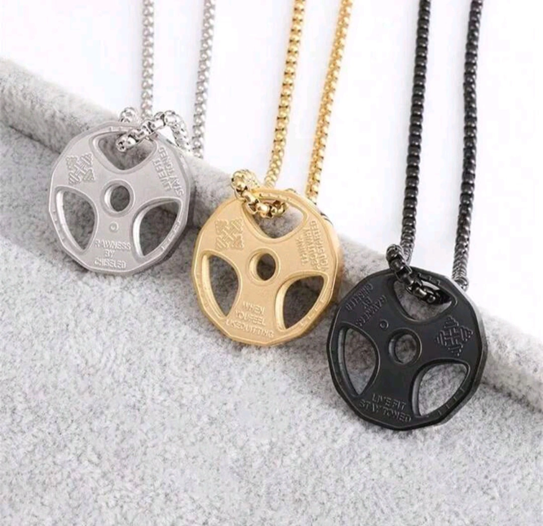 15BRAND NEW Fitness Gym Necklace Weight Plate Barbell Necklace Pendant for Men and Women High quality, stainless steel, gym chain. It features a 45LB weight plate pendant with a comfortable design. Perfect for every gymrat. Available are 3 colors: Gold, Silver, and Black. Only $10 with free shipping! Hurry before we sell out! Stylish weight plate pendant necklace. Available in silver, gold, and black. Features motivational quote. Strong chain included. Perfect gift for fitness enthusiasts.