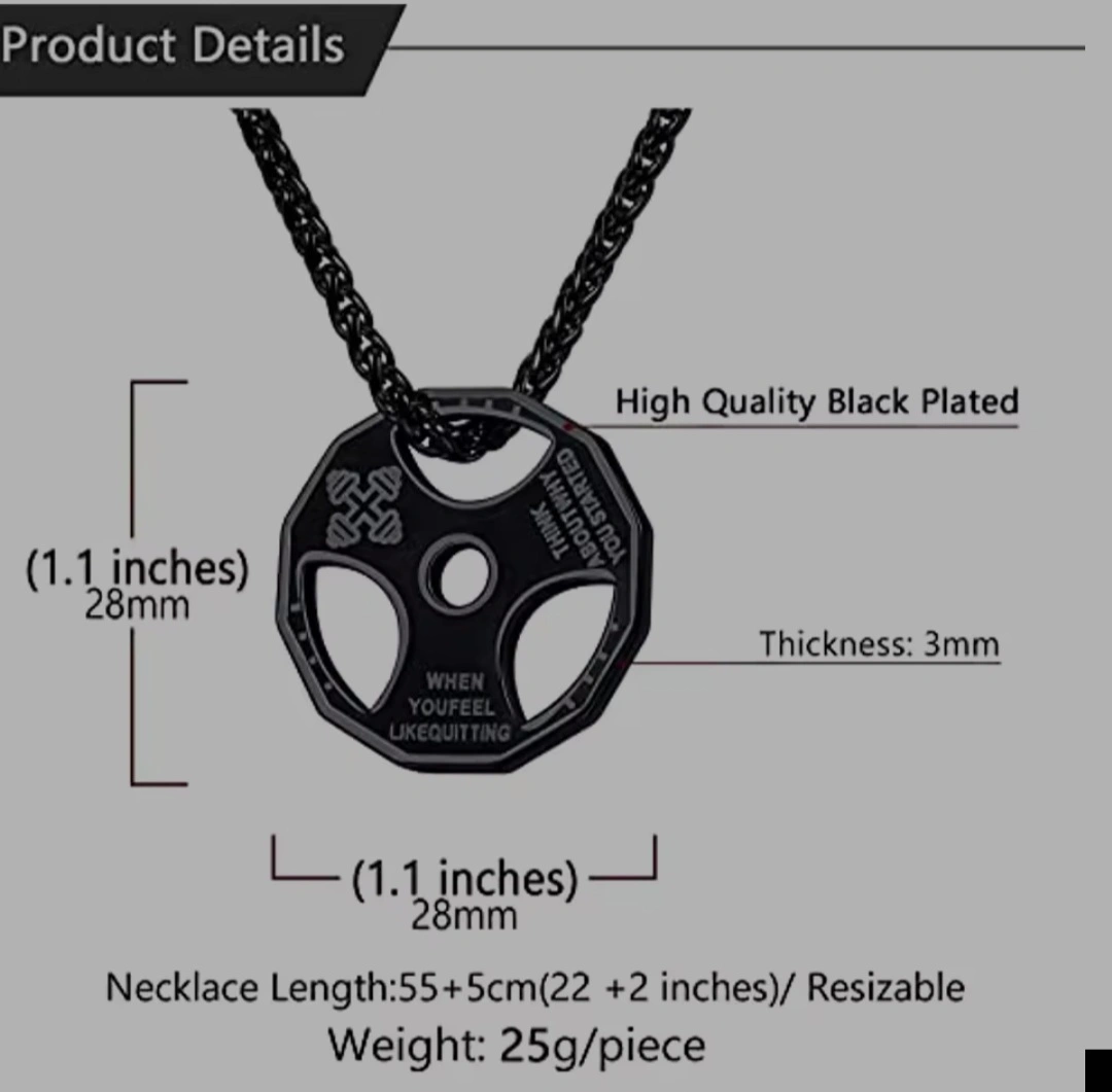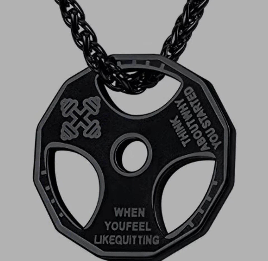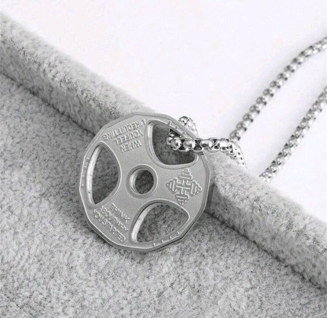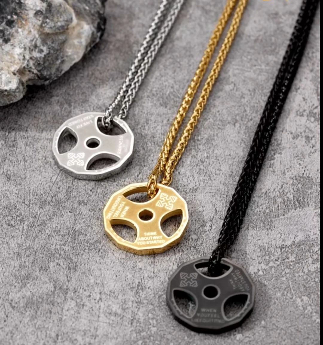15BRAND NEW Fitness Gym Necklace Weight Plate Barbell Necklace Pendant for Men and Women High quality, stainless steel, gym chain. It features a 45LB weight plate pendant with a comfortable design. Perfect for every gymrat. Available are 3 colors: Gold, Silver, and Black. Only $10 with free shipping! Hurry before we sell out! Stylish weight plate pendant necklace. Available in silver, gold, and black. Features motivational quote. Strong chain included. Perfect gift for fitness enthusiasts.