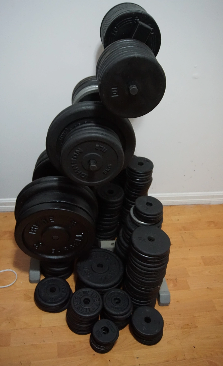 16I'm downsizing and have these weight plates that I no longer will use. They are used, will have some cosmetic imperfections, some will have scratches, rust has been removed and plates are repainted. They have been kept indoors and are from a smoke and pet-free home. And if you are looking for an item, that's not listed here or in any of my other ads, then I DON'T HAVE IT. But, you can still roll the dice and ask me. Location: Roughly by 114th St and 84th Ave in North Delta area 1" standard (NOT OLYMPIC) weight plates for sale: Weight plates for sale: $1.35/lbs 2 x 1.25 lbs / 0.56 kg ( $1.70 each plate) 1 x 1.50 lbs / 0.68 kg ( $2 / each plate) 2 x 2 lbs / 0.90 kg ( $2.70 / each plate) 34 x 2.5 lbs / 1.1 kg ( $3.40 / each plate) 7 x 2.7 lbs / 1.25 kg ( $3.65 / each plate) 2 x 2.8 lbs / 1.25 kg ( $3.65 / each plate) 35 x 3 lbs / 1.4 kg ( $4.05 / each plate) 12 x 3.3 lbs / 1.5 kg ( $4.50 / each plate) 1 x 4 lbs / 1.81 kg ( $5.40 / each plate) 90 x 5 lbs / 2.2 kg ( $6.75 / each plate) 14 x 5.5 lbs / 2.5 kg ( $7.45 / each plate) 12 x 7.5 lbs / 3.4 kg ( $10.15 / each plate) 1 x 10 lbs / 4.5 kg ( $13.50 / each plate) 11 x 11 lbs / 5 kg ( $14.85 / each plate) 2 x 22 lbs / 10 kg ( $29.70 / each plate) 1 x 25 lbs / 11.3 kg ( $33.75 / each plate) 1 x 33 lbs / 15 kg ( $44.55 / each plate) 1 x 50 lbs / 22.6 kg ( $67.50 / each plate) 2 x 50 lbs / 22.6 kg ( $67.50 / each custom plate) I have bars for sale in another ad. Lowballers may get hackled. You Pick Up or can deliver for a fee ( and the fee will depend on how far you live)/Local - no shipping/Cash or e-transfer ( once we meet in person)/will only reserve once we confirm a time to meet, this ad has been placed across other platforms. If the ad is up, it's still available. atlas, Canadiana, champs barbell, cap barbell, fitness, fitness gear, iron disc, Irvine, Johnson, northern lights, pancake plates, Thor, Weider barbell, York plate, York barbell