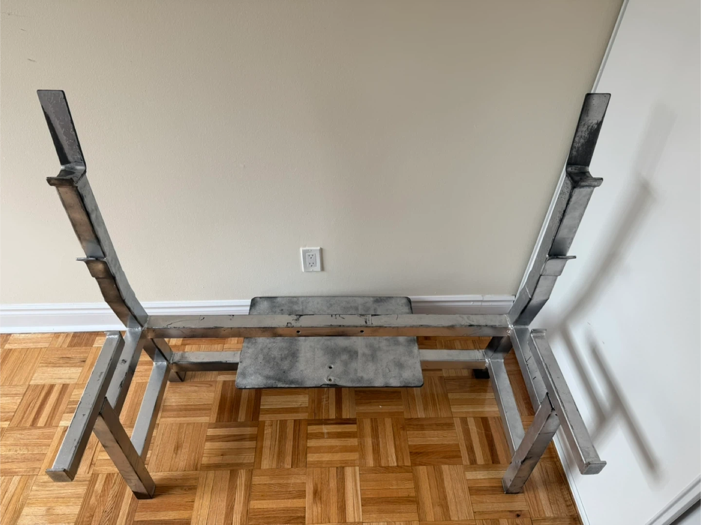 92Squat Rack Stand, Barbell Rack, Bench Press Rack Stand for Home Gym. Material: heavy duty Steel Condition: good condition and very very sturdy — it was black but we spray painted it in silver. NOTE: please check the rest of my listings for more gym and workout equipments as I’m getting rid of many things!