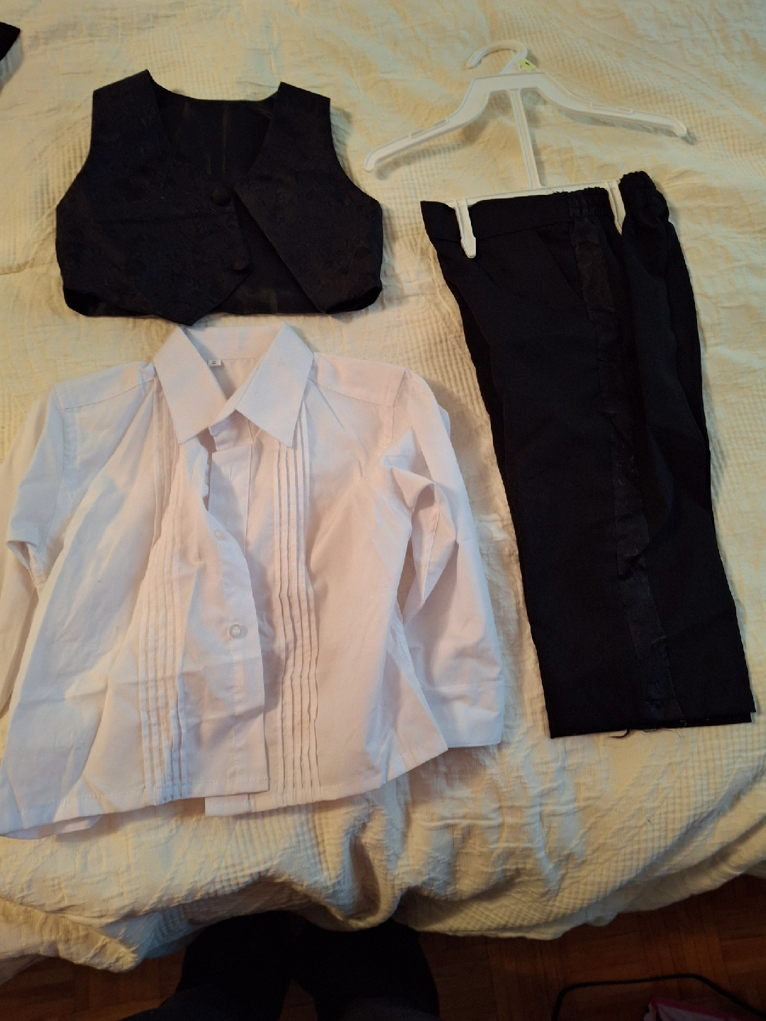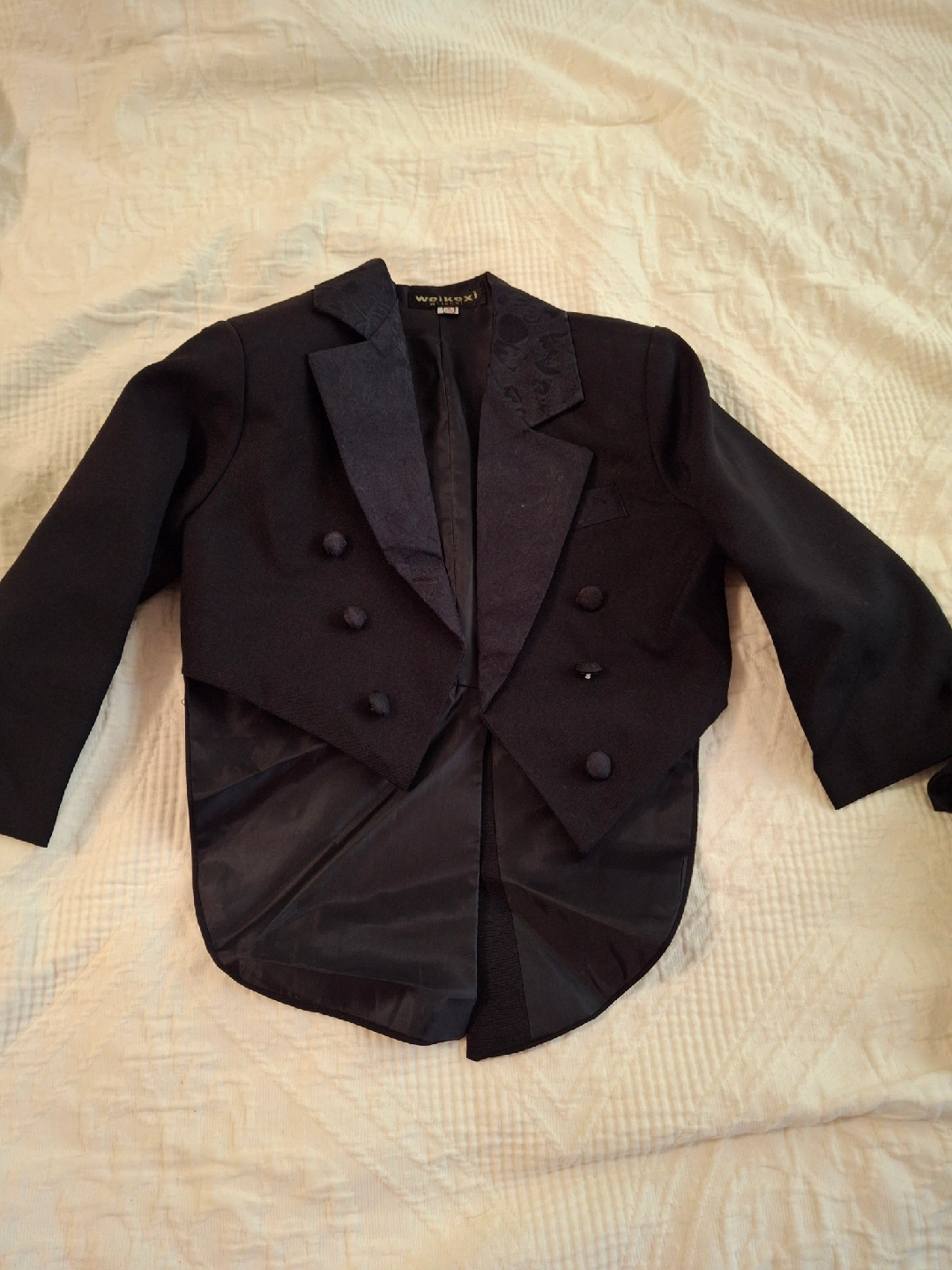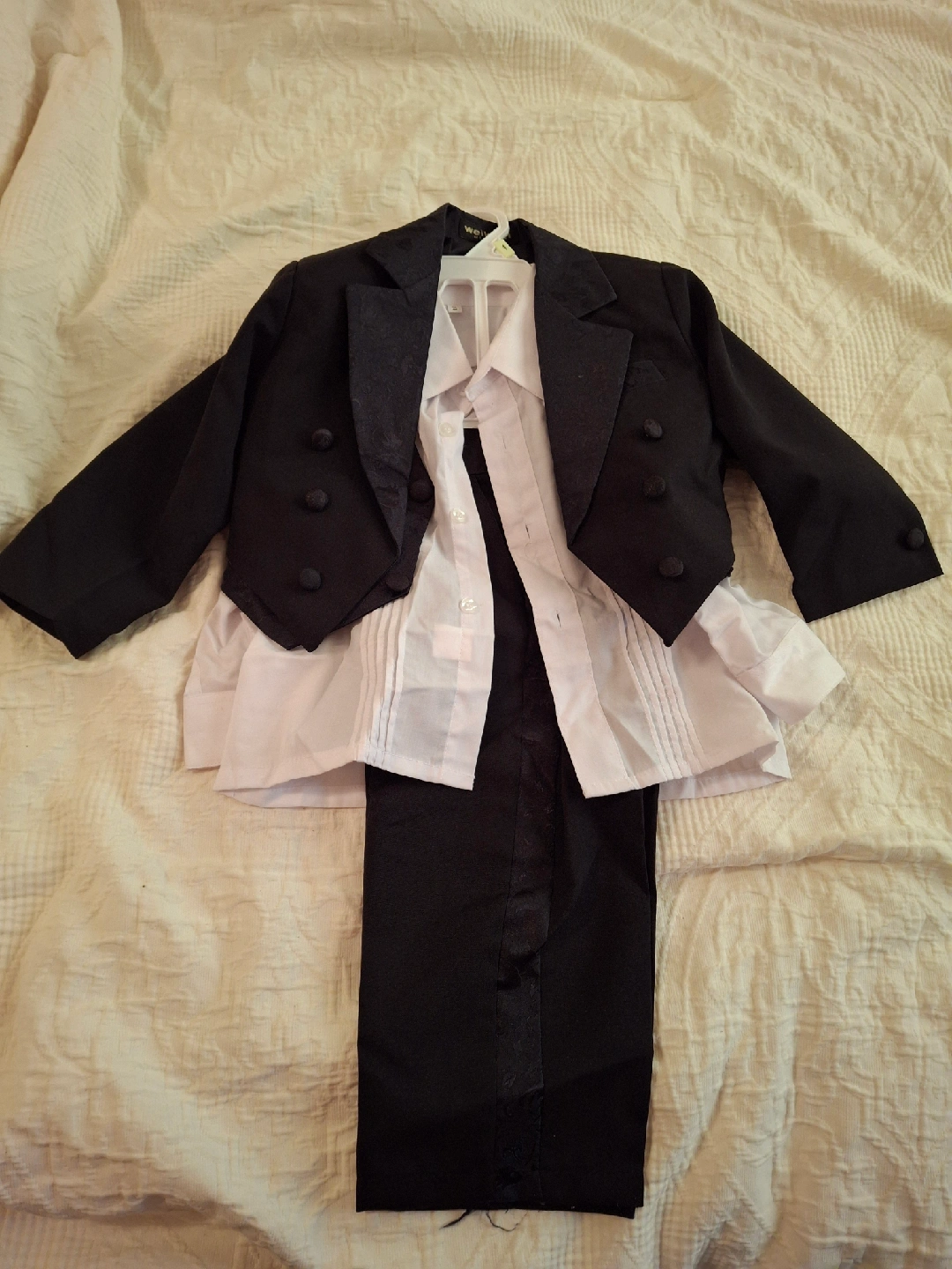 10A complete boys tuxedo set by Weinxs!. Includes the jacket, vest, shirt, and pants. Perfect for special occasions! never worn
